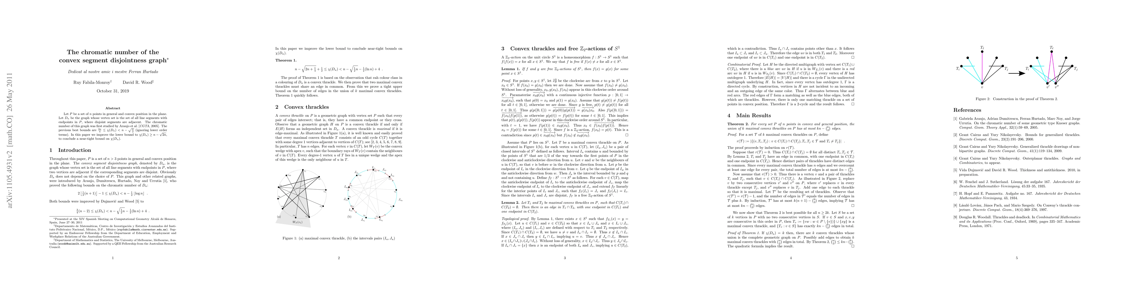 The research paper improves the lower bound of the chromatic number of the convex segment disjointness graph to $n- extstylerac{2}{ extstyle} abla$ , nearly matching the previous best bound.