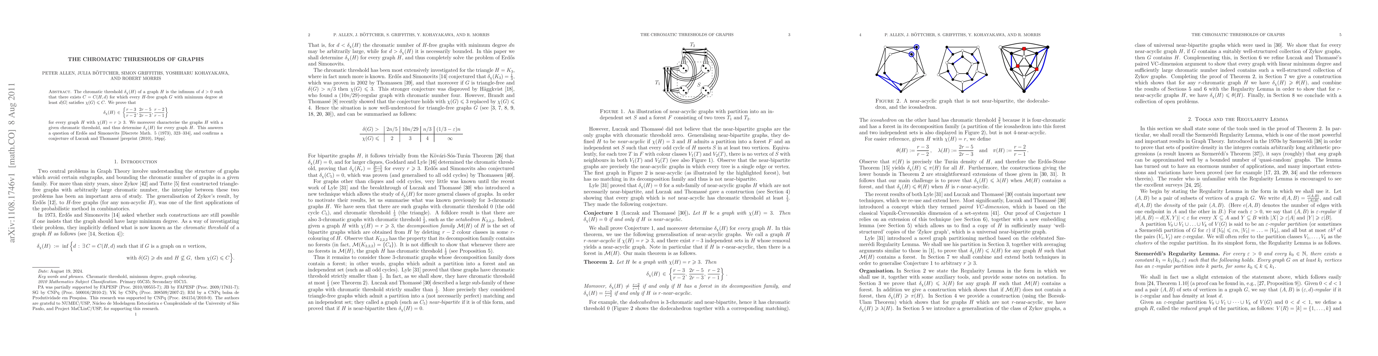 The chromatic threshold delta_chi(H) of a graph H is the infimum of d>0 such