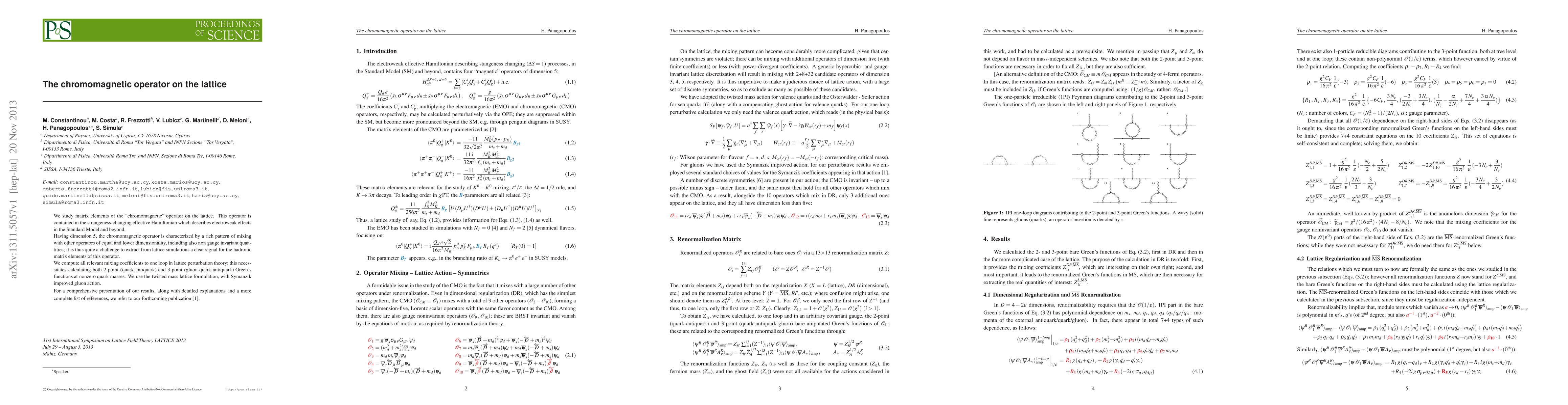 Researchers studied a key operator in particle physics called the chromomagnetic operator on a lattice to improve understanding of electroweak effects. They calculated complex mathematical expressions to extract clear signals for this operator.