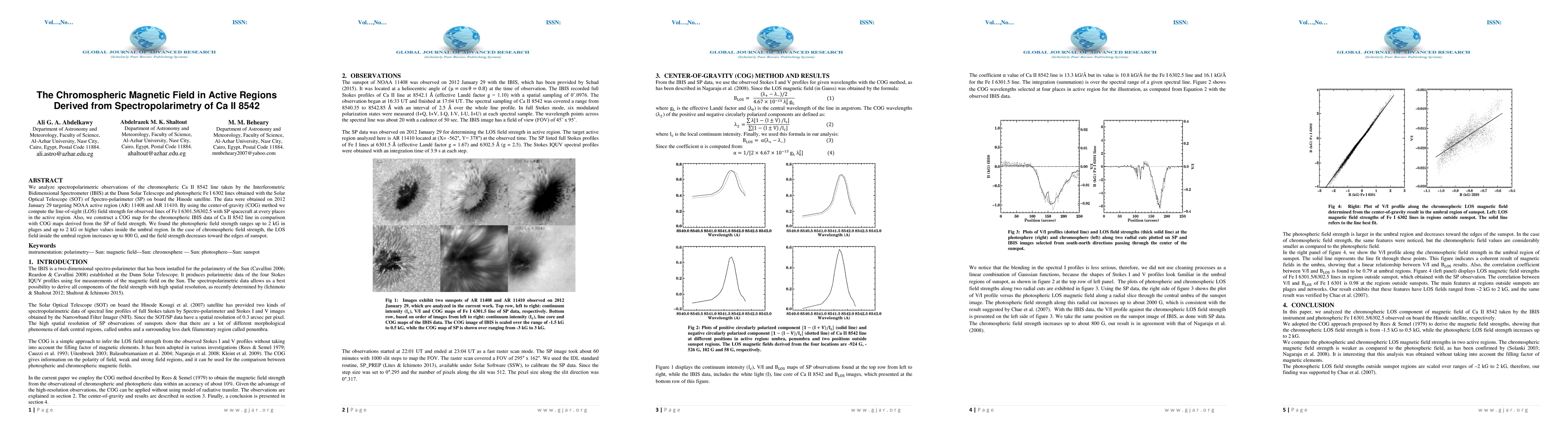 This paper analyzes spectropolarimetric observations of the chromospheric Ca II 8542 line and photospheric Fe I 6302 lines to derive the chromospheric magnetic field in active regions. The study reveals that the photospheric field strength reaches up to 2 kG in plages and umbral regions, while the chromospheric field strength in the umbral region can reach up to 800 G.