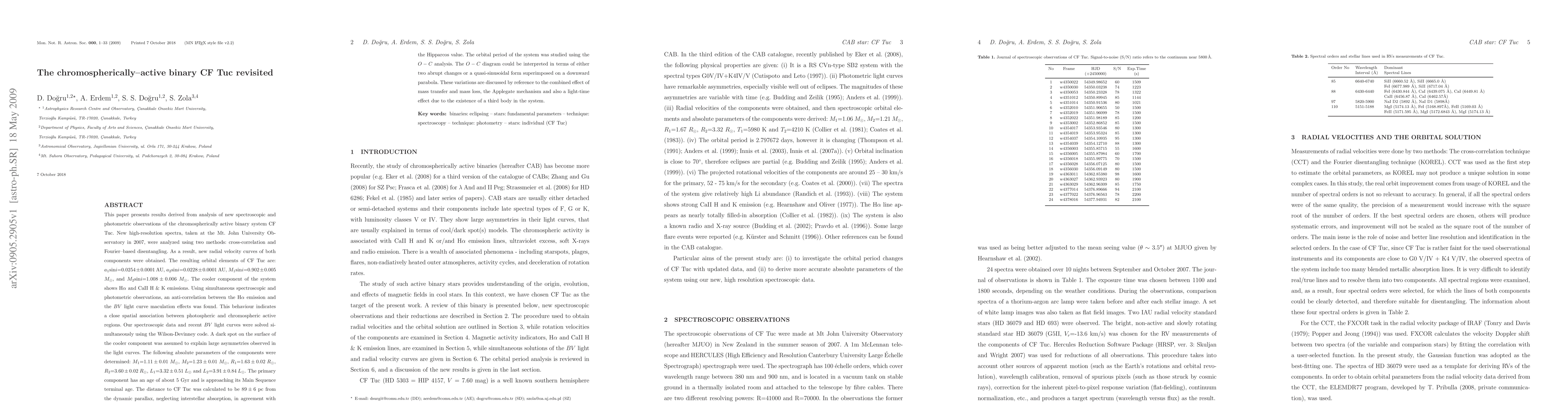 This study revisits the chromospherically active binary system CF Tuc using high-resolution spectra from 2007, yielding new radial velocity curves and orbital elements. The analysis suggests a complex interplay of mass transfer, mass loss, and potential third-body effects influencing the system's orbital period variations.