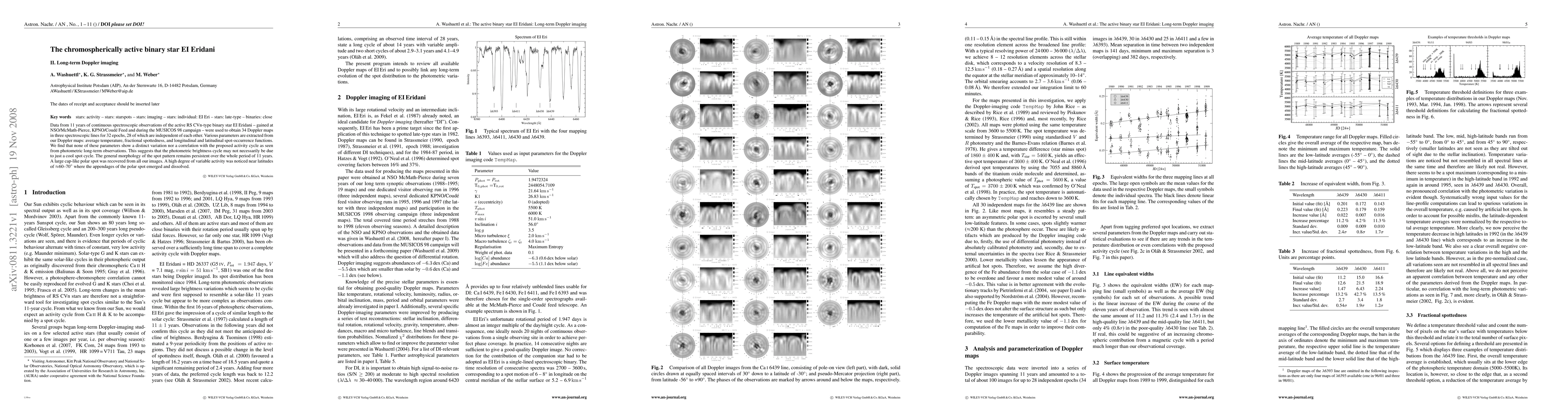 This study uses 11 years of spectroscopic data to create 34 Doppler maps of the RS CVn-type binary star EI Eridani, revealing persistent spot patterns without correlation to the star's photometric cycle. A large polar spot and variable activity near latitudes 60-70 degrees were observed.