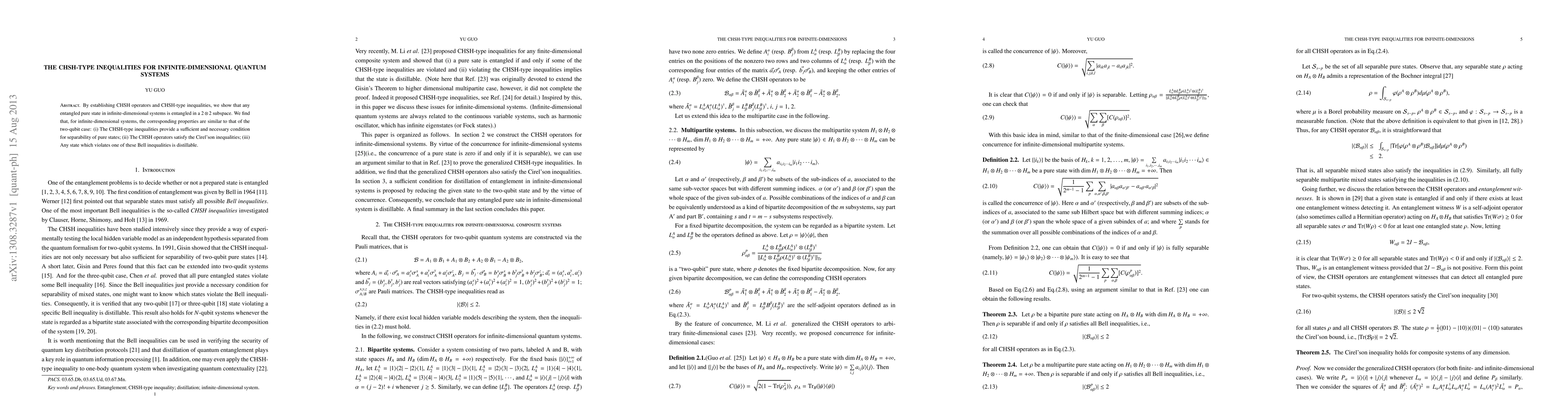 Research shows that entangled pure states in infinite-dimensional quantum systems can only exist within a 2x2 subspace, with CHSH-type inequalities providing a condition for separability and distillability of these states.