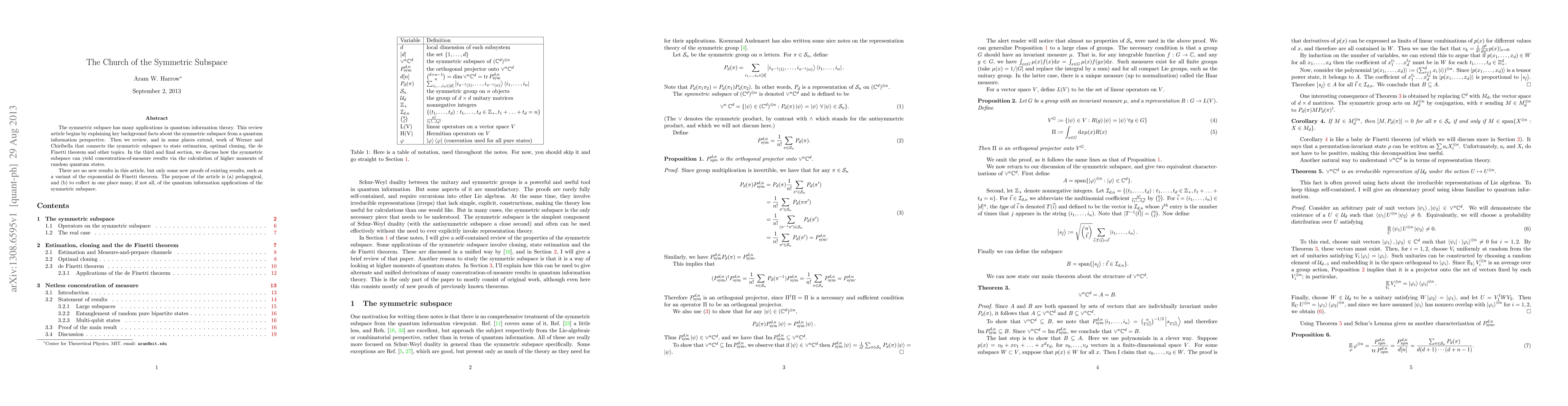 The symmetric subpace has many applications in quantum information theory. This review article begins by explaining key background facts about the symmetric subspace from a quantum information perspective. Then we review, and in some places extend, work of Werner and Chiribella that connects the symmetric subspace to state estimation, optimal cloning, the de Finetti theorem and other topics. In the third and final section, we discuss how the symmetric subspace can yield concentration-of-measure results via the calculation of higher moments of random quantum states. There are no new results in this article, but only some new proofs of existing results, such as a variant of the exponential de Finetti theorem. The purpose of the article is (a) pedagogical, and (b) to collect in one place many, if not all, of the quantum information applications of the symmetric subspace.