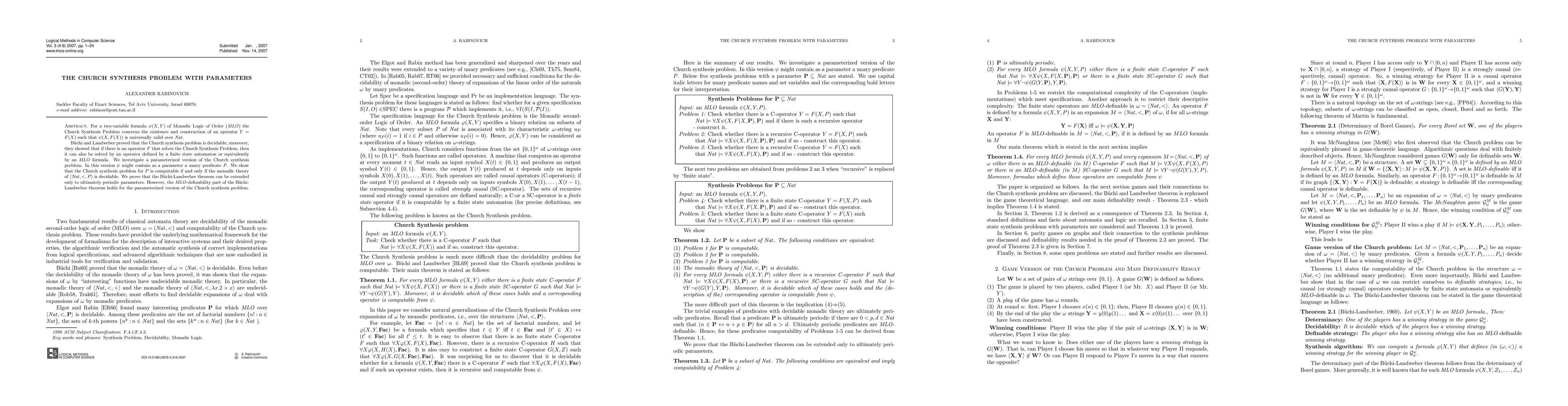 B\"{u}chi and Landweber proved that the Church synthesis problem is