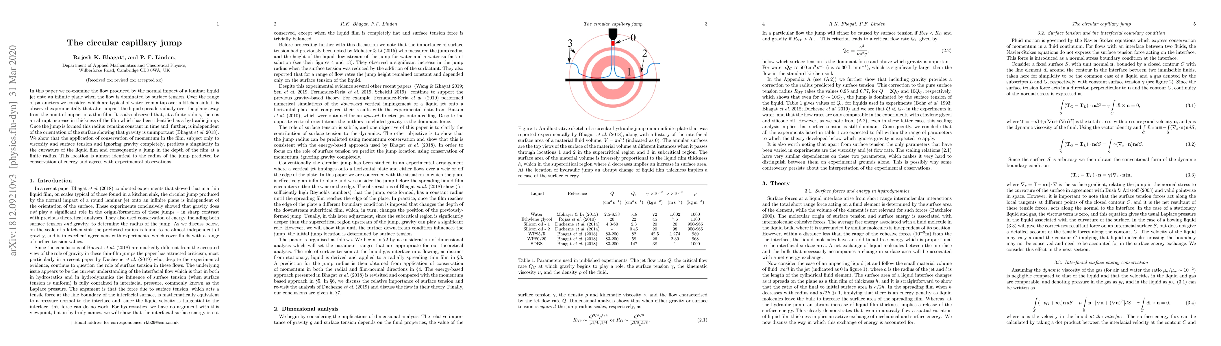 In this paper we re-examine the flow produced by the normal impact of a laminar liquid jet onto an infinite plane when the flow is dominated by surface tension. It is observed experimentally that after impact the liquid spreads radially over the plane away from the point of impact in a thin film. It is also observed that, at a finite radius, there is an abrupt increase in thickness of the film which has been identified as a hydraulic jump,and that this radius is independent of the orientation of the surface showing that gravity is unimportant (Bhagat et al. 2018). We show that the application of conservation of momentum in the film, subject only to viscosity and surface tension and ignoring gravity completely, predicts a singularity in the curvature of the liquid film and consequently a jump in the depth of the film at a finite radius. This location is almost identical to the radius of the jump predicted by conservation of energy and agrees with experimental observations