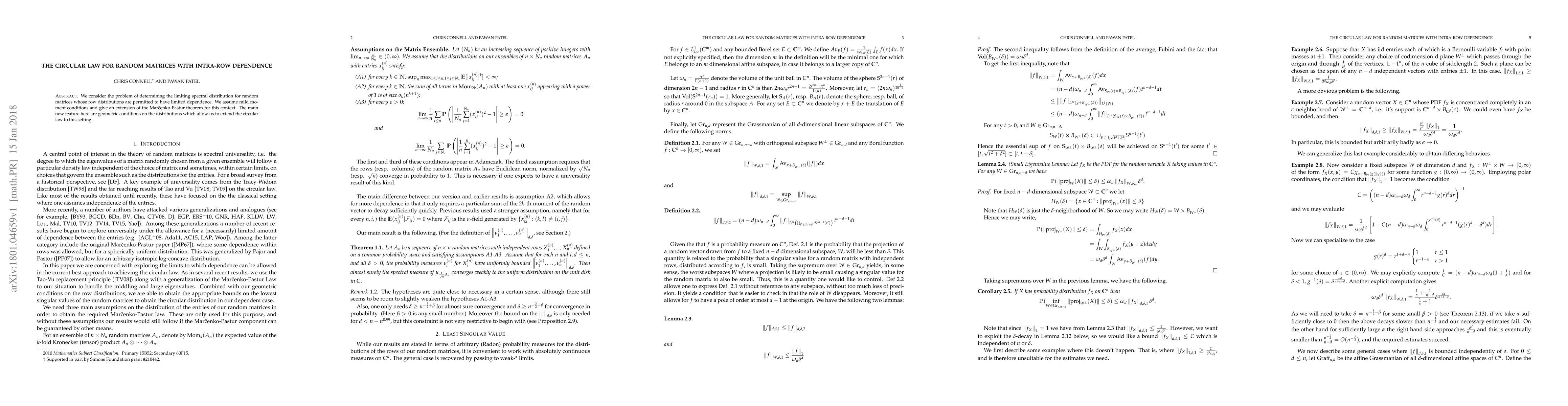 This paper extends the circular law for random matrices with intra-row dependence, assuming mild moment conditions and geometric conditions on the distributions, to improve the accuracy of spectral distribution calculations.