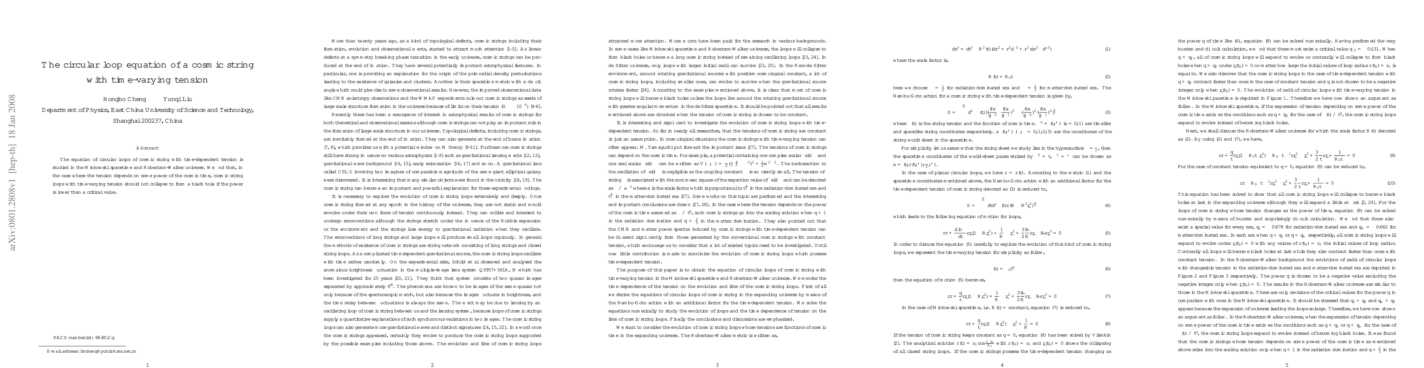 The equation of circular loops of cosmic string with time-dependent tension is studied in the Minkowski spacetime and Robertson-Walker universe. We find that, in the case where the tension depends on some power of the cosmic time, cosmic string loops with time-varying tension should not collapse to form a black hole if the power is lower than a critical value.