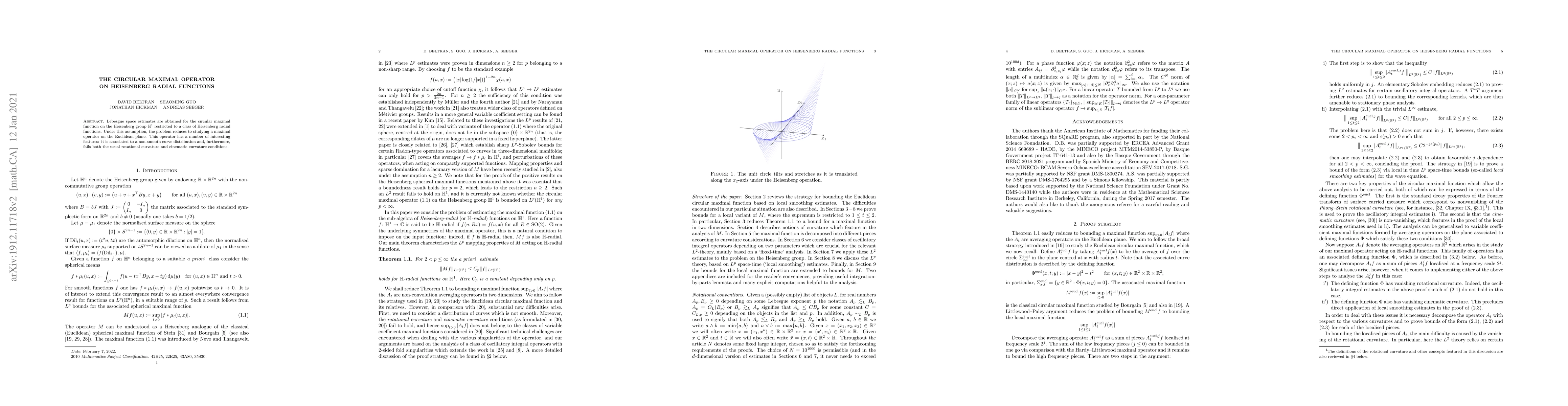 This paper provides Lebesgue space estimates for the circular maximal operator applied to Heisenberg radial functions on the Heisenberg group $\mathbb{H}^1$, which simplifies to studying a maximal operator on the Euclidean plane with unique non-smooth curve distribution characteristics.