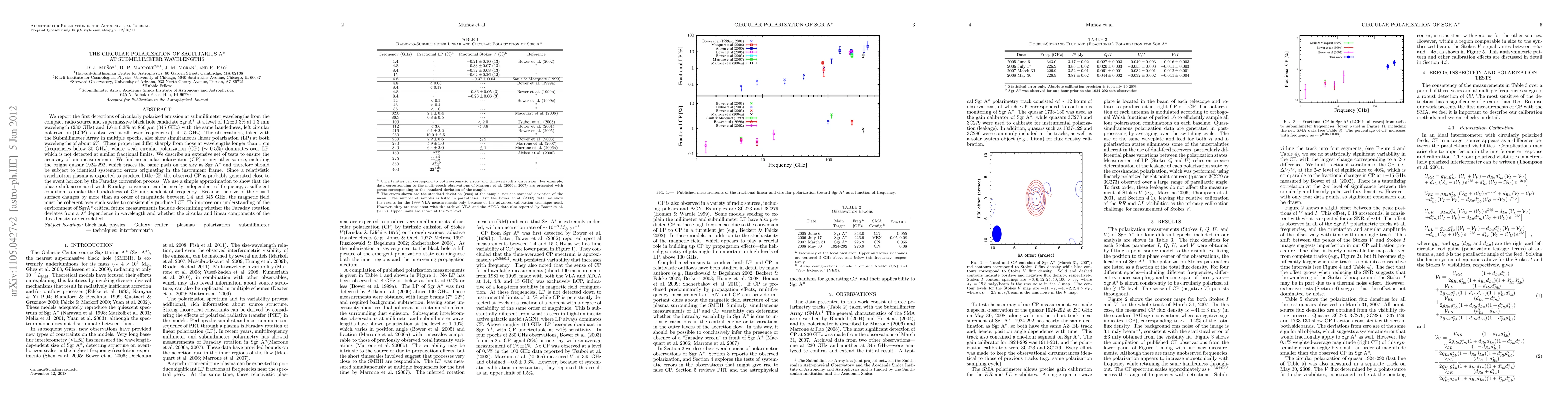 We report the first detections of circularly polarized emission at submillimeter wavelengths from the compact radio source and supermassive black hole candidate Sgr A* at a level of 1.2\pm0.3% at 1.3 mm wavelength (230 GHz) and 1.6\pm0.3% at 860 microns (345 GHz) with the same handedness as observed at lower frequencies (1.4-15 GHz). The observations, taken with the Submillimeter Array in multiple epochs, also show simultaneous linear polarization (LP) at both wavelengths of about 6%. These properties differ sharply from those at wavelengths longer than 1 cm (frequencies below 30 GHz), where weak circular polarization (CP) (~ 0.5%) dominates over LP, which is not detected at similar fractional limits. We describe an extensive set of tests to ensure the accuracy of our measurements. We find no CP in any other source, including the bright quasar 1924-292, which traces the same path on the sky as Sgr A* and therefore should be subject to identical systematic errors originating in the instrument frame. Since a relativistic synchrotron plasma is expected to produce little CP, the observed CP is probably generated close to the event horizon by the Faraday conversion process. We use a simple model to show that the phase shift associated with Faraday conversion can be nearly independent of frequency, a sufficient condition to make the handedness of CP independent of frequency. Because the size of the tau=1-surface changes by more than an order of magnitude between 1.4 and 345 GHz, the magnetic field must be coherent over such scales to consistently produce left CP.