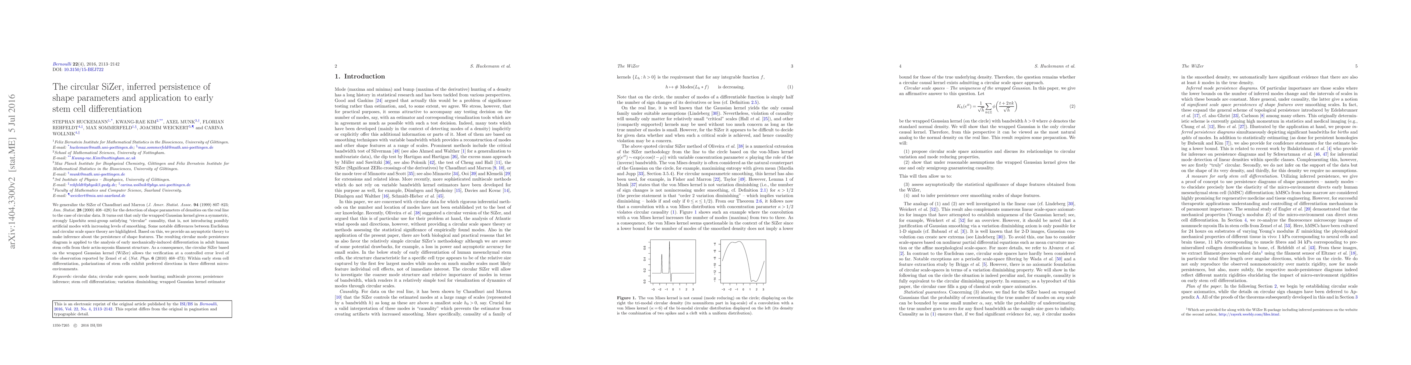 We generalize the SiZer of Chaudhuri and Marron (J. Amer. Statist. Assoc. 94 (1999) 807-823, Ann. Statist. 28 (2000) 408-428) for the detection of shape parameters of densities on the real line to the case of circular data. It turns out that only the wrapped Gaussian kernel gives a symmetric, strongly Lipschitz semi-group satisfying "circular" causality, that is, not introducing possibly artificial modes with increasing levels of smoothing. Some notable differences between Euclidean and circular scale space theory are highlighted. Based on this, we provide an asymptotic theory to make inference about the persistence of shape features. The resulting circular mode persistence diagram is applied to the analysis of early mechanically-induced differentiation in adult human stem cells from their actin-myosin filament structure. As a consequence, the circular SiZer based on the wrapped Gaussian kernel (WiZer) allows the verification at a controlled error level of the observation reported by Zemel et al. (Nat. Phys. 6 (2010) 468-473): Within early stem cell differentiation, polarizations of stem cells exhibit preferred directions in three different micro-environments.