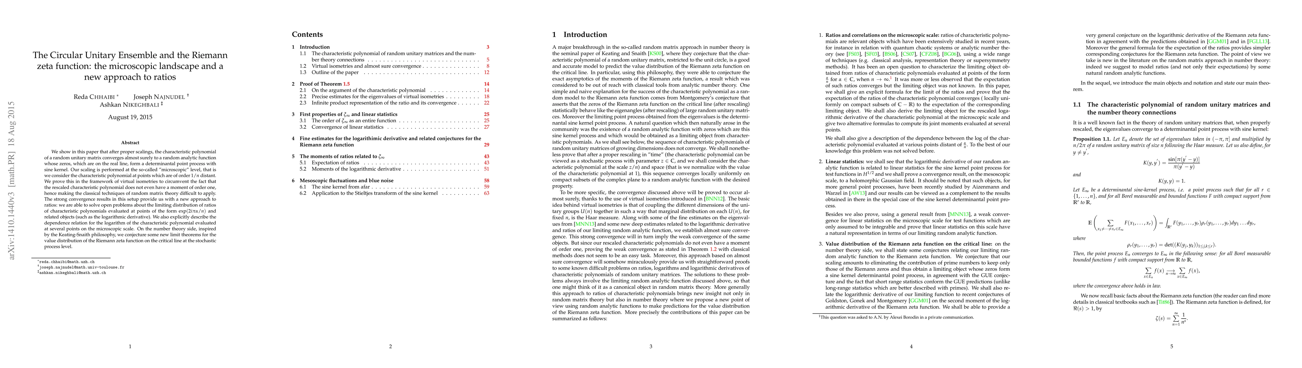 We show in this paper that after proper scalings, the characteristic polynomial of a random unitary matrix converges almost surely to a random analytic function whose zeros, which are on the real line, form a determinantal point process with sine kernel. Our scaling is performed at the so-called "microscopic" level, that is we consider the characteristic polynomial at points which are of order $1/n$ distant. We prove this in the framework of virtual isometries to circumvent the fact that the rescaled characteristic polynomial does not even have a moment of order one, hence making the classical techniques of random matrix theory difficult to apply. The strong convergence results in this setup provide us with a new approach to ratios: we are able to solve open problems about the limiting distribution of ratios of characteristic polynomials evaluated at points of the form $\exp(2 i \pi \alpha/n)$ and related objects (such as the logarithmic derivative). We also explicitly describe the dependence relation for the logarithm of the characteristic polynomial evaluated at several points on the microscopic scale. On the number theory side, inspired by the Keating-Snaith philosophy, we conjecture some new limit theorems for the value distribution of the Riemann zeta function on the critical line at the stochastic process level.
