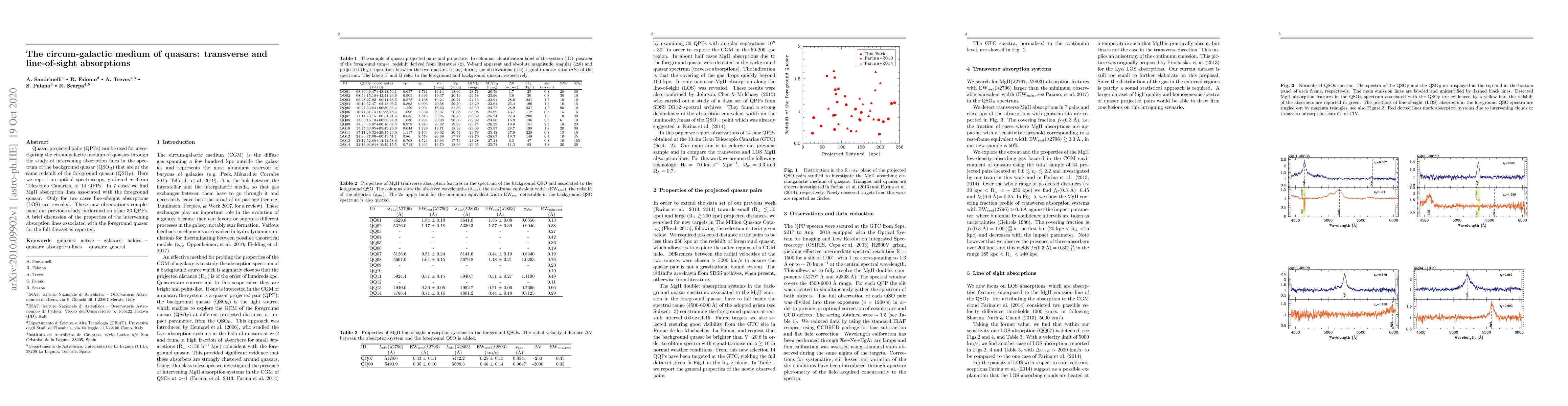 Quasar projected pairs (QPPs) can be used for investigating the circumgalactic medium of quasars through the study of intervening absorption lines in the spectrum of the background quasar that are at the same redshift of the foreground quasar. Here we report on optical spectroscopy, gathered at Gran Telescopio Canarias, of 14 QPPs. In 7 cases we find MgII absorption lines associated with the foreground quasar. Only for two cases line-of-sight absorptions (LOS) are revealed. These new observations complement our previous study performed on other 30 QPPs. A brief discussion of the properties of the intervening absorption lines associated with the foreground quasar for the full dataset is reported.