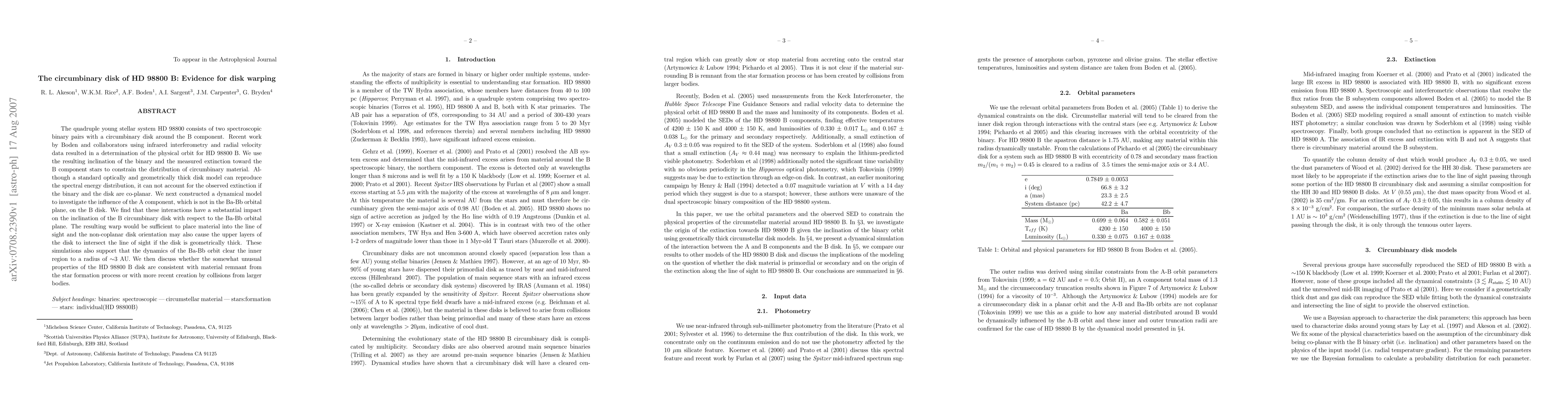 This paper investigates the circumbinary disk around HD 98800 B, revealing evidence for disk warping due to gravitational interactions with the non-coplanar A component. The warp is substantial enough to account for observed extinction, suggesting the disk is not co-planar with the Ba-Bb binary orbit.
