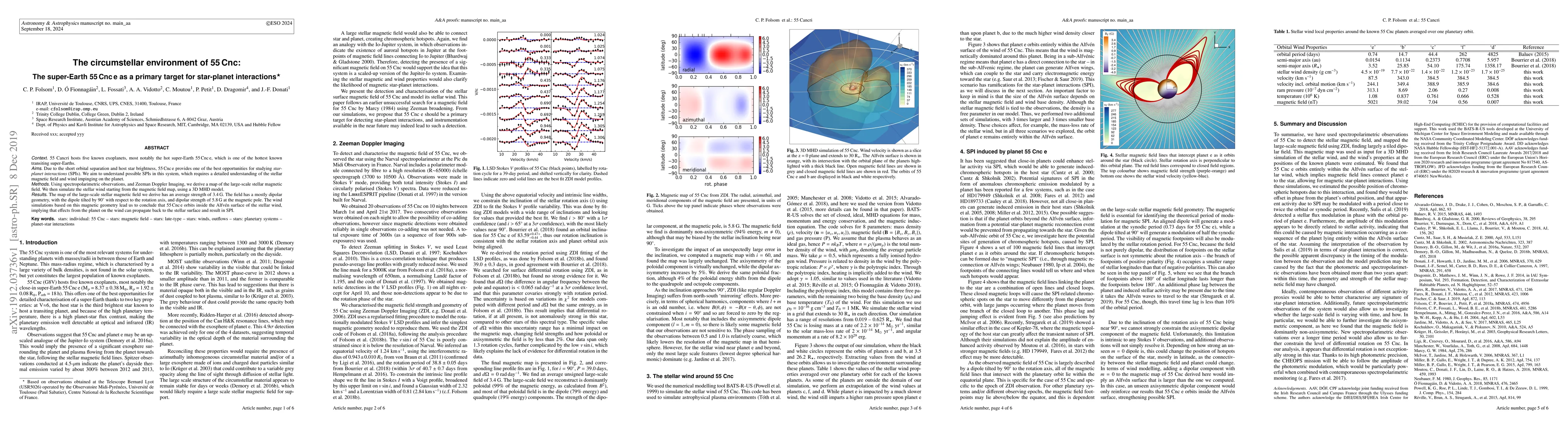 This paper investigates the circumstellar environment of 55 Cnc e, a hot super-Earth, using spectropolarimetric observations and 3D MHD models to map the stellar magnetic field and simulate the stellar wind. The study finds that 55 Cnc e orbits within the Alfvén surface, suggesting significant star-planet interactions due to the influence of the planet on the stellar wind.