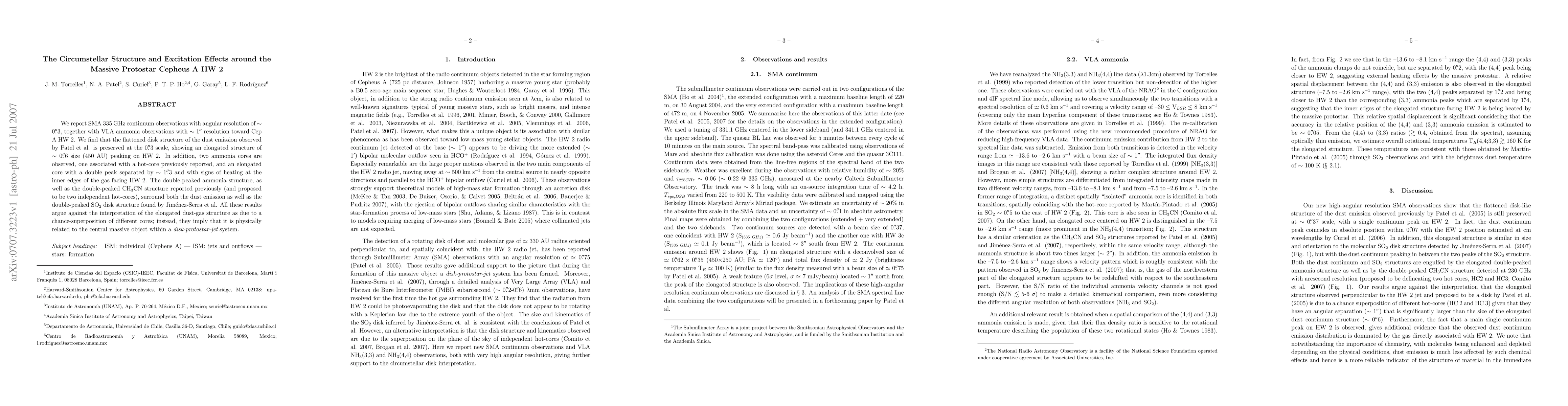 We report SMA 335 GHz continuum observations with angular resolution of ~0.''3, together with VLA ammonia observations with ~1'' resolution toward Cep A HW 2. We find that the flattened disk structure of the dust emission observed by Patel et al. is preserved at the 0.''3 scale, showing an elongated structure of ~$0.''6 size (450 AU) peaking on HW 2. In addition, two ammonia cores are observed, one associated with a hot-core previously reported, and an elongated core with a double peak separated by ~1.''3 and with signs of heating at the inner edges of the gas facing HW 2. The double-peaked ammonia structure, as well as the double-peaked CH3CN structure reported previously (and proposed to be two independent hot-cores), surround both the dust emission as well as the double-peaked SO2 disk structure found by Jimenez-Serra et al. All these results argue against the interpretation of the elongated dust-gas structure as due to a chance-superposition of different cores; instead, they imply that it is physically related to the central massive object within a disk-protostar-jet system.