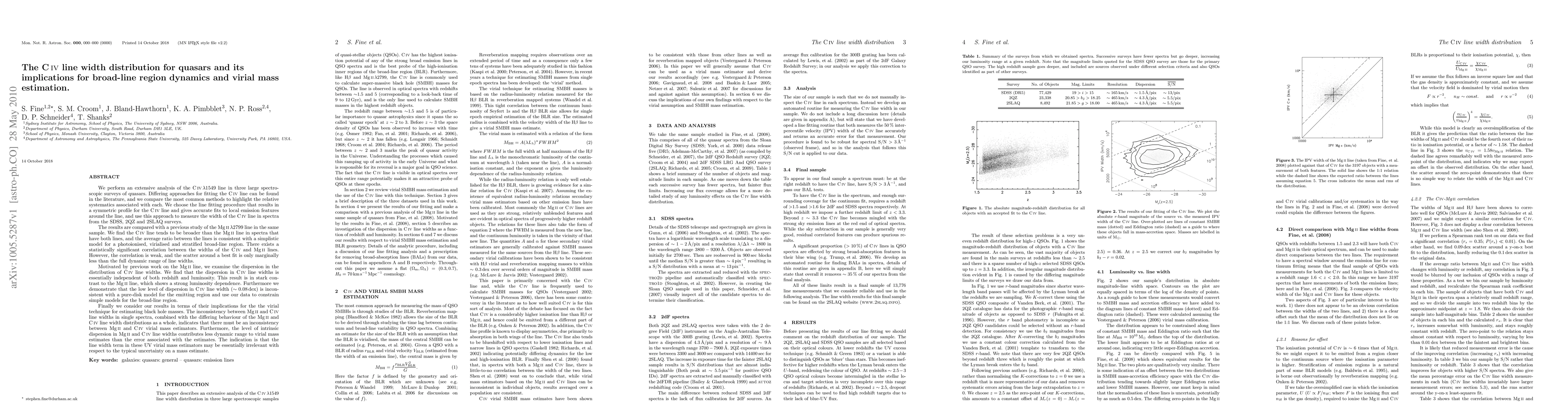 We perform an extensive analysis of the Civ line in three large spectroscopic surveys of quasars. Differing approaches for fitting the Civ line can be found in the literature, and we compare the most common methods to highlight the relative systematics associated with each. We develop a line fitting procedure and apply it to the Civ line in spectra from the SDSS, 2QZ and 2SLAQ surveys. Our results are compared with a previous study of the Mgii line in the same sample. Civ tends to be broader than the Mgii line in spectra that have both, and the average ratio between the lines is consistent with a simplistic model for a photoionised, virialised and stratified broad-line region. There is a statistically significant correlation between the widths of the Civ and Mgii lines. However, the correlation is weak, and the scatter around a best fit is only marginally less than the full dynamic range of line widths. Motivated by previous work, we examine the dispersion in the distribution of Civ line widths. We find that the dispersion in Civ line widths is essentially independent of both redshift and luminosity. This is in stark contrast to the Mgii line, which shows a strong luminosity dependence. Finally we consider our results in terms of their implications for virial black hole mass estimation. The inconsistency between Mgii and Civ line widths in single spectra, combined with the differing behaviour of the Mgii and Civ line width distributions, indicates that there must be an inconsistency between Mgii and Civ virial mass estimators. Furthermore, the level of intrinsic dispersion in Mgii and Civ line widths contributes less dynamic range to virial mass estimates than the error associated with the estimates. The indication is that the line width term in these UV virial mass estimators may be essentially irrelevant with respect to the typical uncertainty on a mass estimate.