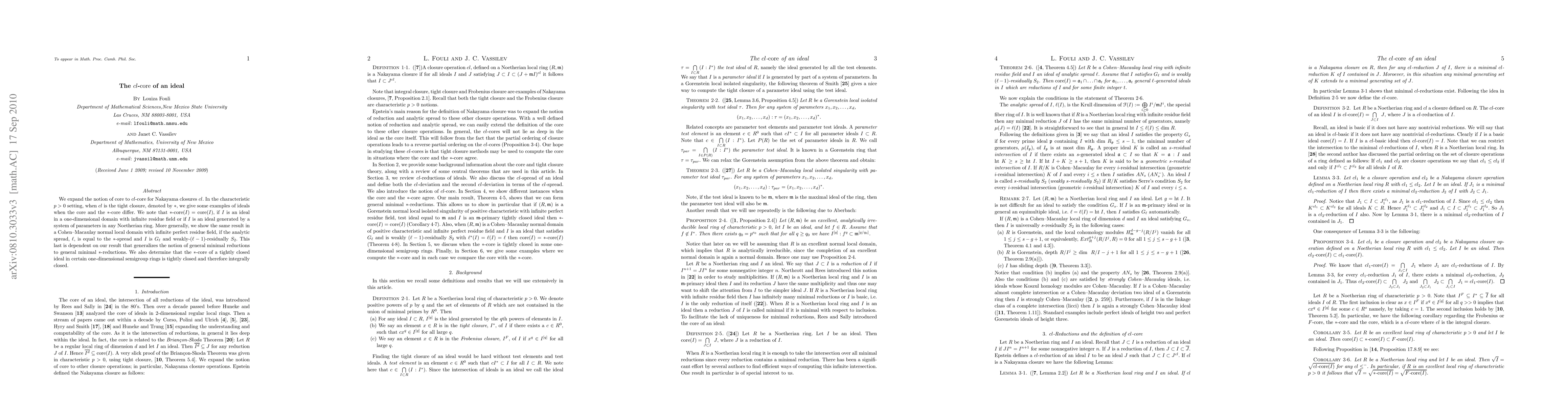 We expand the notion of core to $cl$-core for Nakayama closures $cl$. In the characteristic $p>0$ setting, when $cl$ is the tight closure, denoted by *, we give some examples of ideals when the core and the *-core differ. We note that *-core$(I)=$ core$(I)$, if $I$ is an ideal in a one-dimensional domain with infinite residue field or if $I$ is an ideal generated by a system of parameters in any Noetherian ring. More generally, we show the same result in a Cohen--Macaulay normal local domain with infinite perfect residue field, if the analytic spread, $\ell$, is equal to the *-spread and $I$ is $G_{\ell}$ and weakly-$(\ell-1)$-residually $S_2$. This last is dependent on our result that generalizes the notion of general minimal reductions to general minimal *-reductions. We also determine that the *-core of a tightly closed ideal in certain one-dimensional semigroup rings is tightly closed and therefore integrally closed.