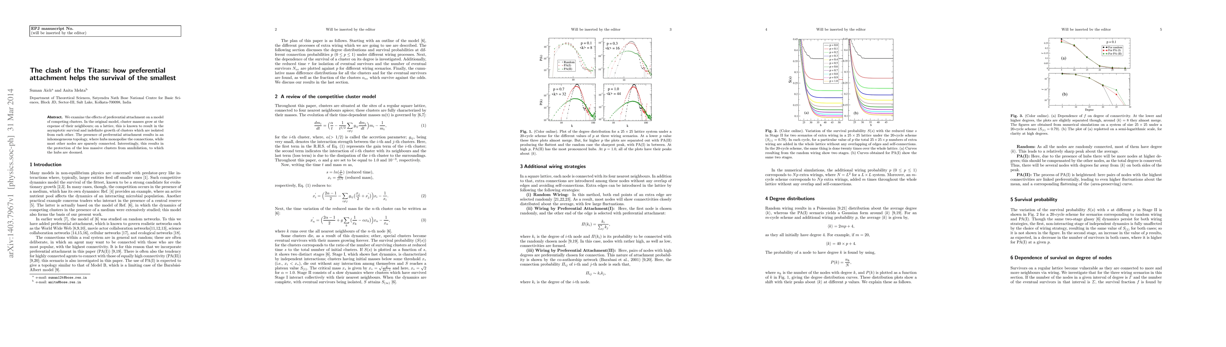 We examine the effects of preferential attachment on a model of competing clusters. In the original model, cluster masses grow at the expense of their neighbours; on a lattice, this is known to result in the asymptotic survival and indefinite growth of clusters which are isolated from each other. The presence of preferential attachment results in an inhomogeneous topology, where hubs monopolize the connections, while most other nodes are sparsely connected. Interestingly, this results in the protection of the less massive clusters from annihilation, to which the hubs are doomed.