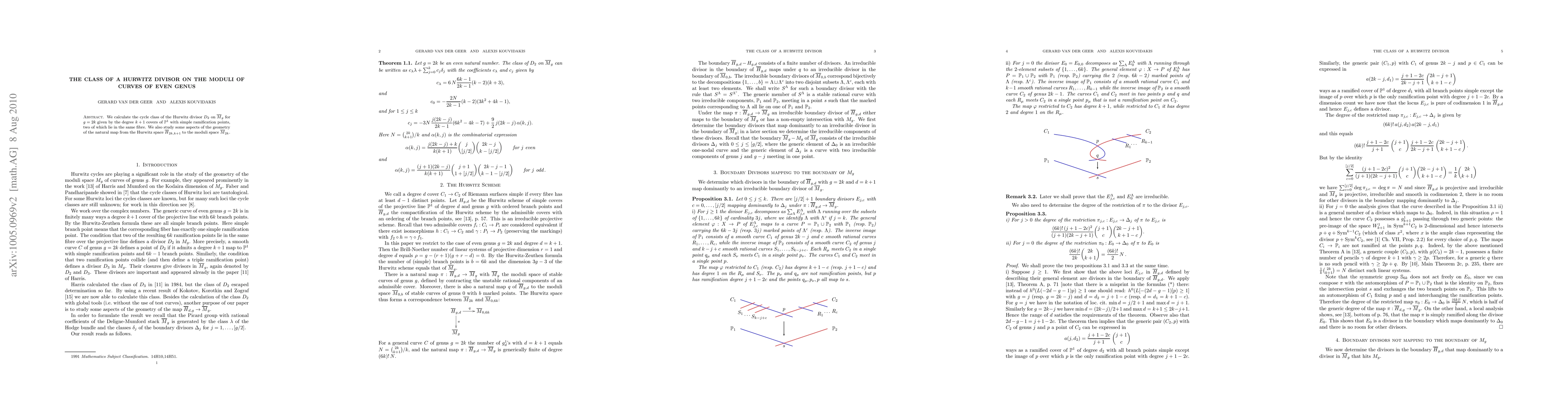 The paper presents detailed calculations and proofs regarding the cycle class and irreducibility of specific Hurwitz divisors on moduli spaces, advancing the theoretical understanding of these geometric objects.