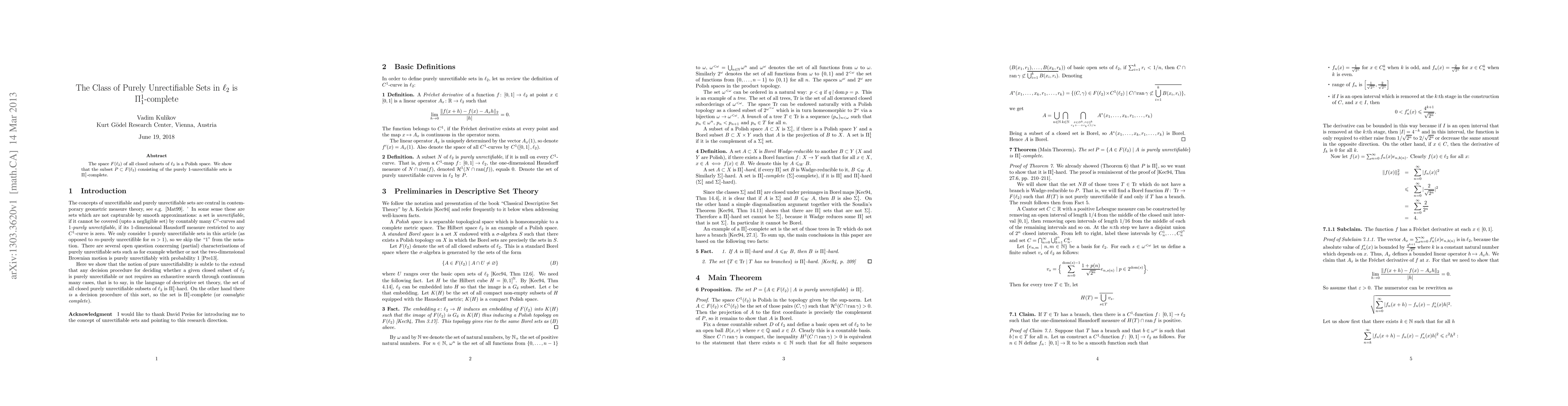 Summary: The paper demonstrates that the class of purely unrectifiable sets within the space of closed subsets of the Hilbert space $\ell_2$ is coanalytic-complete, establishing its $\Pii$-completeness in the Polish space $F(\ell_2)$.