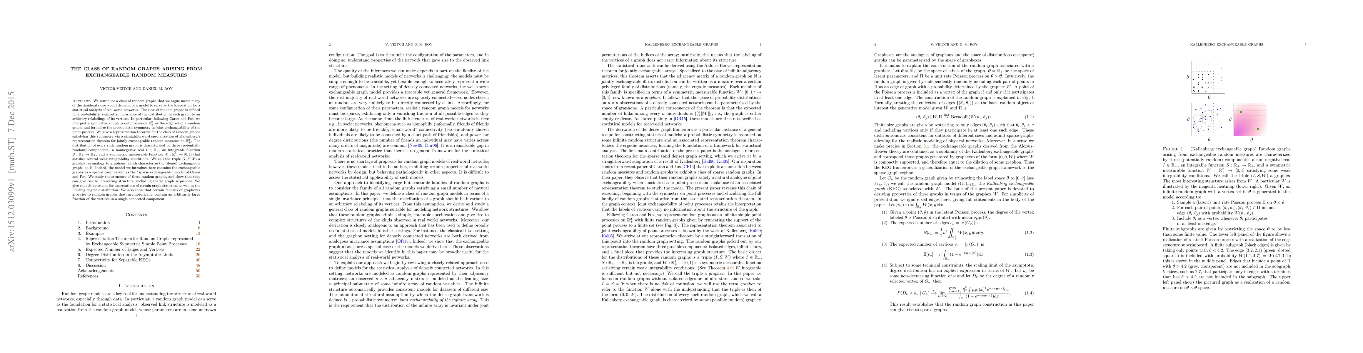 This paper introduces a new class of random graphs defined by a probabilistic symmetry, characterized by a triple $(I,S,W)$ called a graphex. The authors show that these graphexes can generate interesting structures, including sparse graph sequences and large connected components, and provide equations for expectations of graph statistics.
