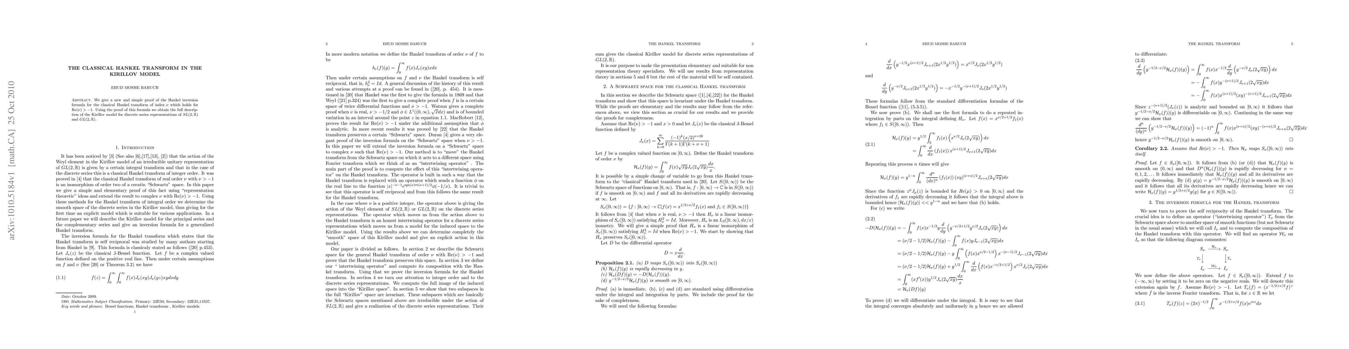 Researchers provide a new proof of the Hankel inversion formula for the classical Hankel transform, which helps describe discrete series representations of SL(2,R) and GL(2,R), revealing a full understanding of the Kirillov model.