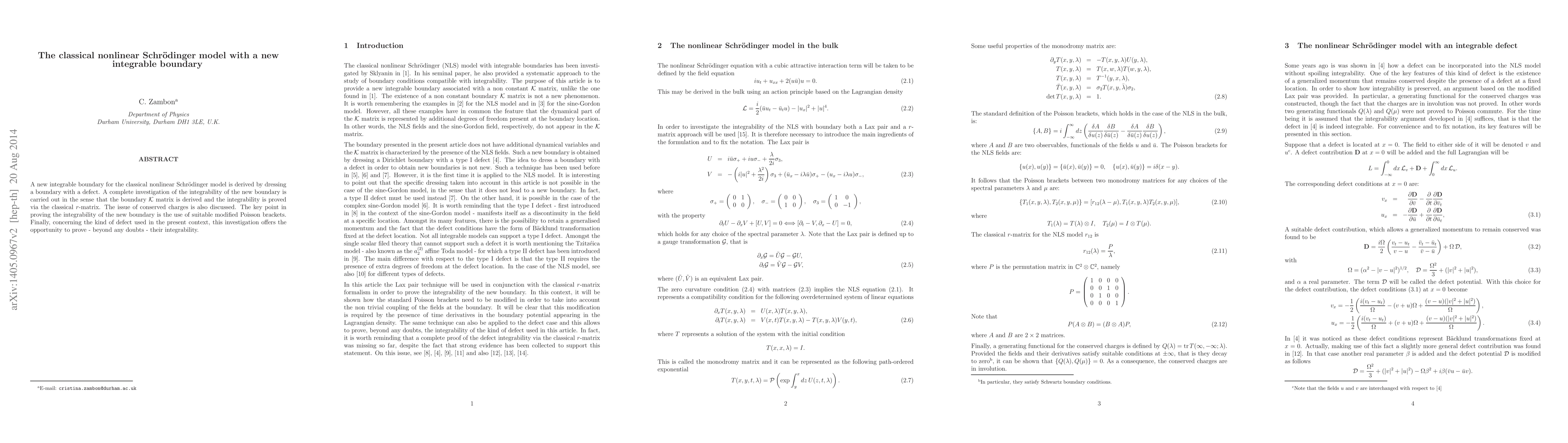 This paper introduces a new integrable boundary for the classical nonlinear Schrödinger model by incorporating a defect. The authors prove the integrability of this boundary through the derivation of the boundary ${\cal K}$ matrix and the classical $r$-matrix, while also discussing conserved charges and employing modified Poisson brackets to confirm the model's integrability.
