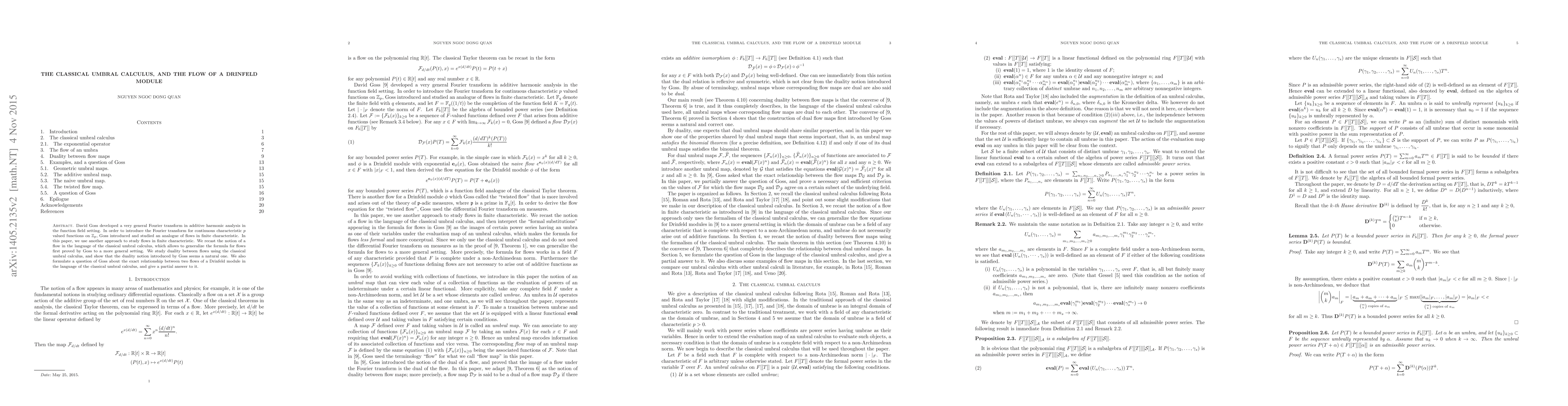 This paper recasts the notion of flows in finite characteristic using the classical umbral calculus, generalizing Goss's formula for flows and exploring duality. It also addresses a question posed by Goss regarding the relationship between two flows of a Drinfeld module, offering a partial solution.