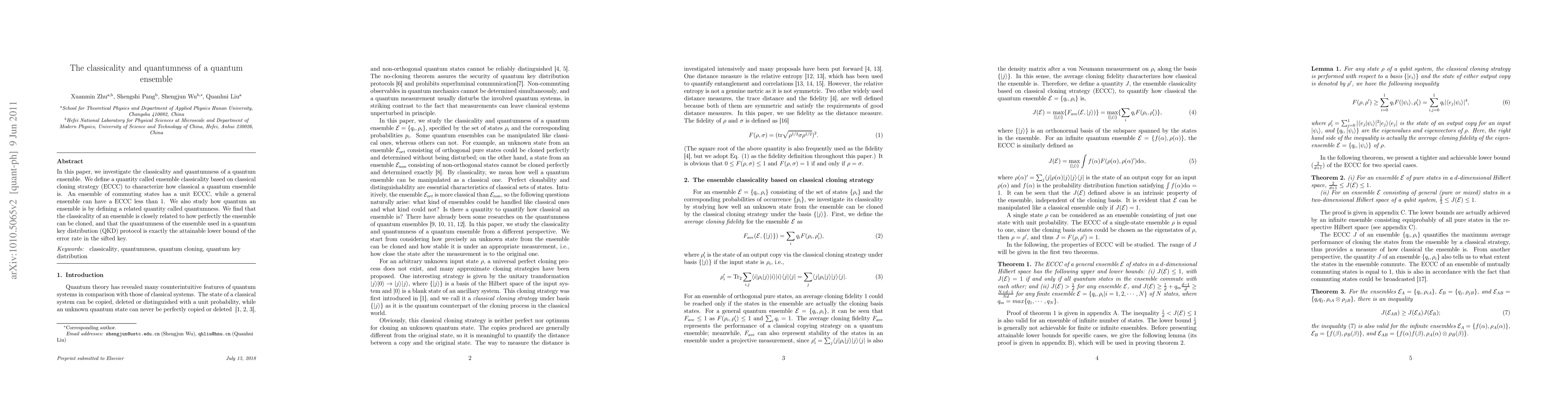 This paper defines classicality and quantumness to characterize quantum ensembles, finding that classicality relates to ensemble cloning capabilities while quantumness impacts the security of quantum key distribution protocols, and is the minimum error rate in sifted keys.