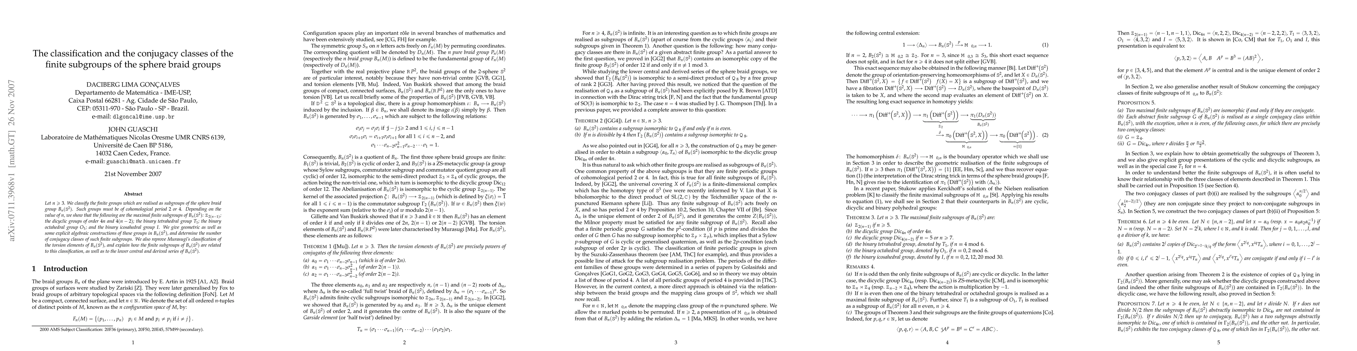 Let n\geq 3. We classify the finite groups which are realised as subgroups of the sphere braid group B_n(S^2). Such groups must be of cohomological period 2 or 4. Depending on the value of n, we show that the following are the maximal finite subgroups of B_n(S^2): Z_{2(n-1)}; the dicyclic groups of order 4n and 4(n-2); the binary tetrahedral group T_1; the binary octahedral group O_1; and the binary icosahedral group I. We give geometric as well as some explicit algebraic constructions of these groups in B_n(S^2), and determine the number of conjugacy classes of such finite subgroups. We also reprove Murasugi's classification of the torsion elements of B_n(S^2), and explain how the finite subgroups of B_n(S^2) are related to this classification, as well as to the lower central and derived series of B_n(S^2).