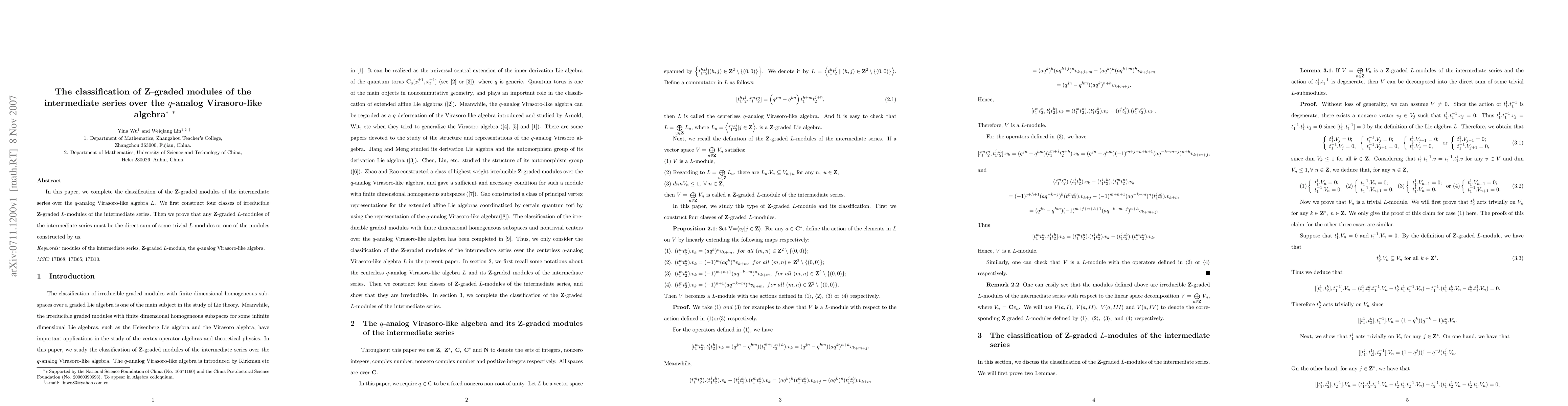 In this paper, we complete the classification of the {\bf Z}-graded modules of the intermediate series over the $q$-analog Virasoro-like algebra $L$. We first construct four classes of irreducible {\bf Z}-graded $L$-modules of the intermediate series. Then we prove that any {\bf Z}-graded $L$-modules of the intermediate series must be the direct sum of some trivial $L$-modules or one of the modules constructed by us.