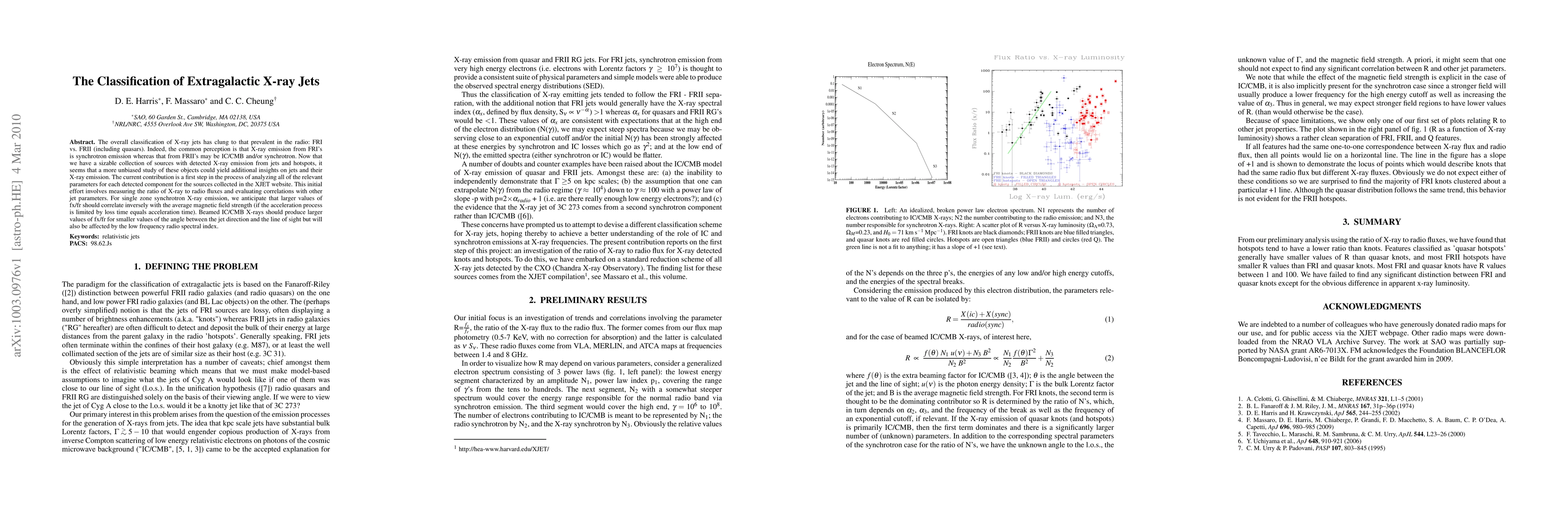 The overall classification of X-ray jets has clung to that prevalent in the radio: FRI vs. FRII (including quasars). Indeed, the common perception is that X-ray emission from FRI's is synchrotron emission whereas that from FRII's may be IC/CMB and/or synchrotron. Now that we have a sizable collection of sources with detected X-ray emission from jets and hotspots, it seems that a more unbiased study of these objects could yield additional insights on jets and their X-ray emission. The current contribution is a first step in the process of analyzing all of the relevant parameters for each detected component for the sources collected in the XJET website. This initial effort involves measuring the ratio of X-ray to radio fluxes and evaluating correlations with other jet parameters. For single zone synchrotron X-ray emission, we anticipate that larger values of fx/fr should correlate inversely with the average magnetic field strength (if the acceleration process is limited by loss time equals acceleration time). Beamed IC/CMB X-rays should produce larger values of fx/fr for smaller values of the angle between the jet direction and the line of sight but will also be affected by the low frequency radio spectral index.