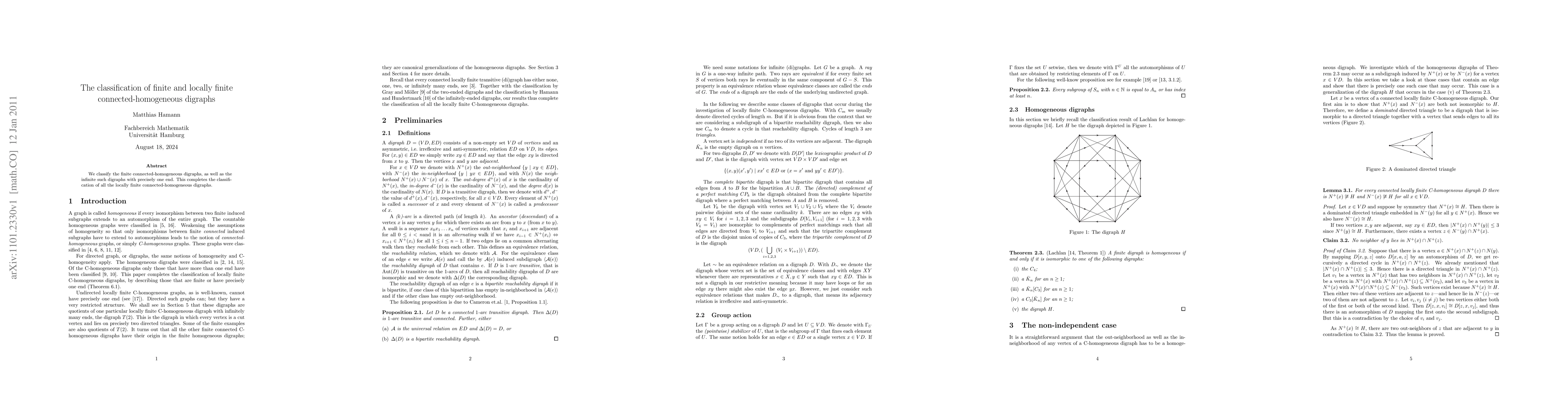 This paper classifies all finite connected-homogeneous digraphs and extends the classification to infinite locally finite connected-homogeneous digraphs with exactly one end, completing the classification of such structures.