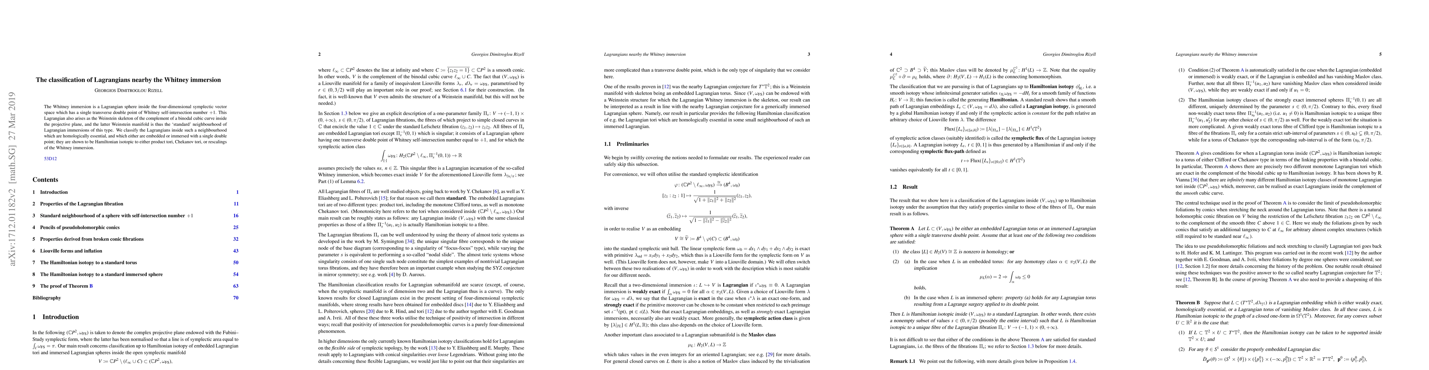 The Whitney immersion is a Lagrangian sphere inside the four-dimensional symplectic vector space which has a single transverse double point of Whitney self-intersection number $+1.$ This Lagrangian also arises as the Weinstein skeleton of the complement of a binodal cubic curve inside the projective plane, and the latter Weinstein manifold is thus the `standard' neighbourhood of Lagrangian immersions of this type. We classify the Lagrangians inside such a neighbourhood which are homologically essential, and which either are embedded or immersed with a single double point; they are shown to be Hamiltonian isotopic to either product tori, Chekanov tori, or rescalings of the Whitney immersion.