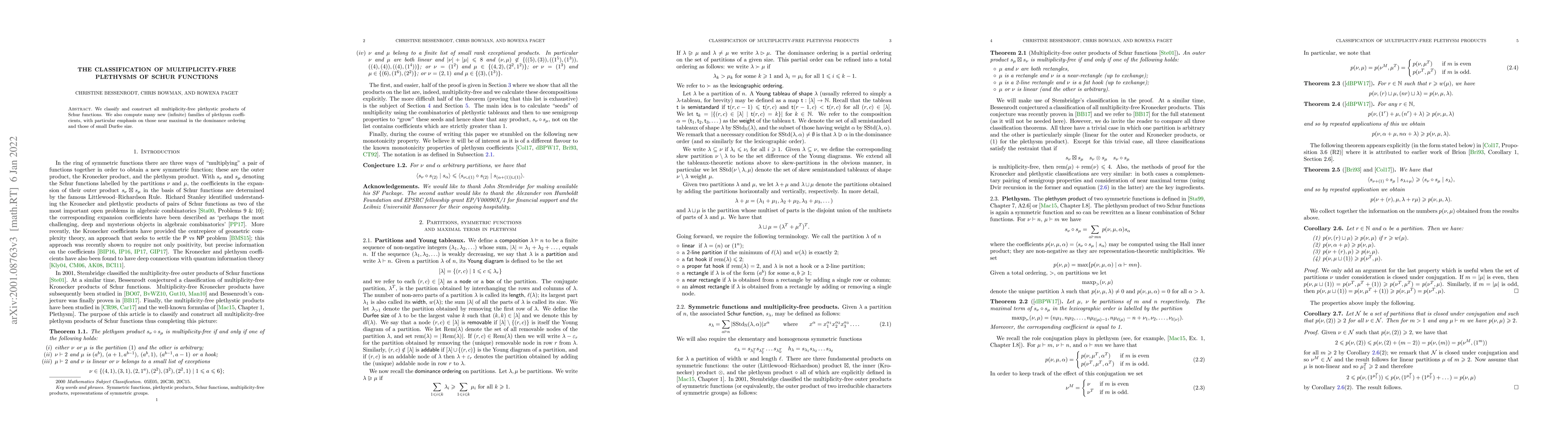 This paper classifies and constructs all multiplicity-free plethystic products of Schur functions, and computes new families of plethysm coefficients, focusing on those with maximal dominance and small Durfee size.