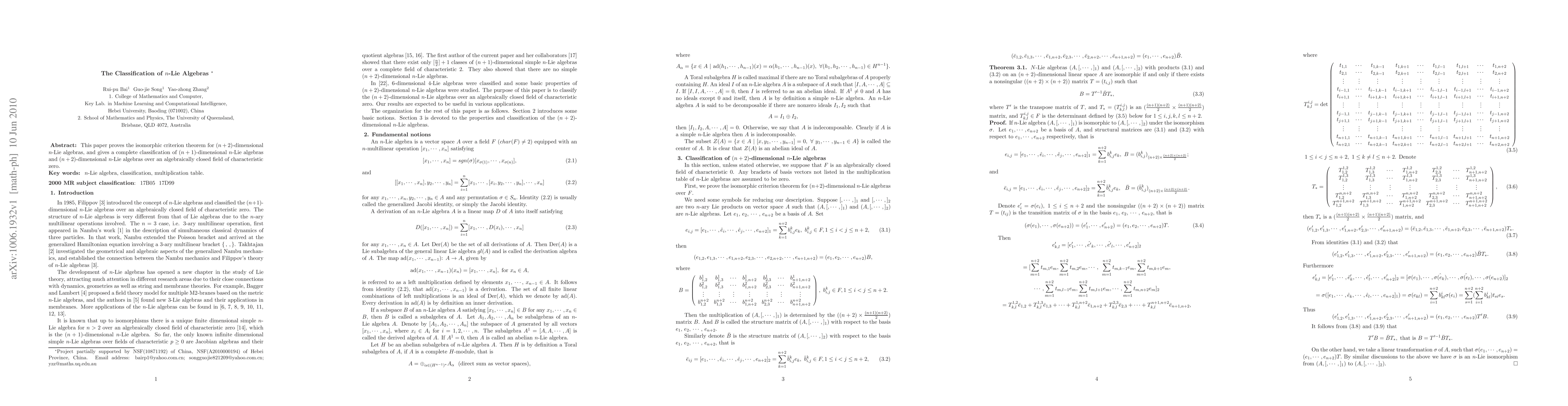 This paper proves the isomorphic criterion theorem for (n+2)-dimensional n-Lie algebras, and gives a complete classification of (n+1)-dimensional n-Lie algebras and (n+2)-dimensional n-Lie algebras over an algebraically closed field of characteristic zero.