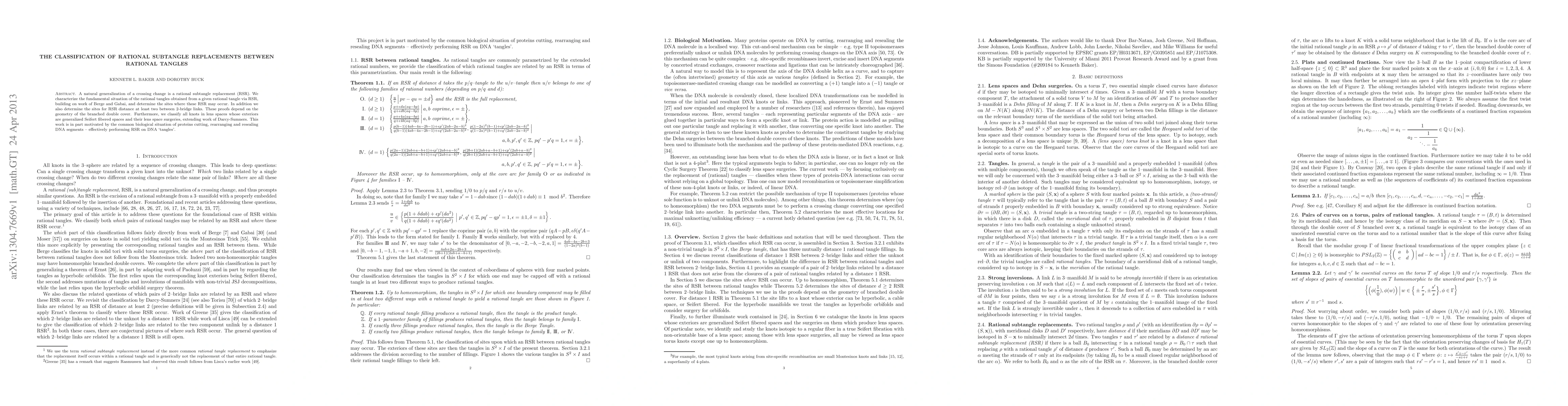 This paper classifies rational subtangle replacements (RSR) between rational tangles and identifies sites for such replacements in 2-bridge links, leveraging the geometry of the branched double cover. It also extends previous work on knots in lens spaces with generalized Seifert fibered spaces. The research draws parallels to biological processes where proteins manipulate DNA segments akin to RSR.