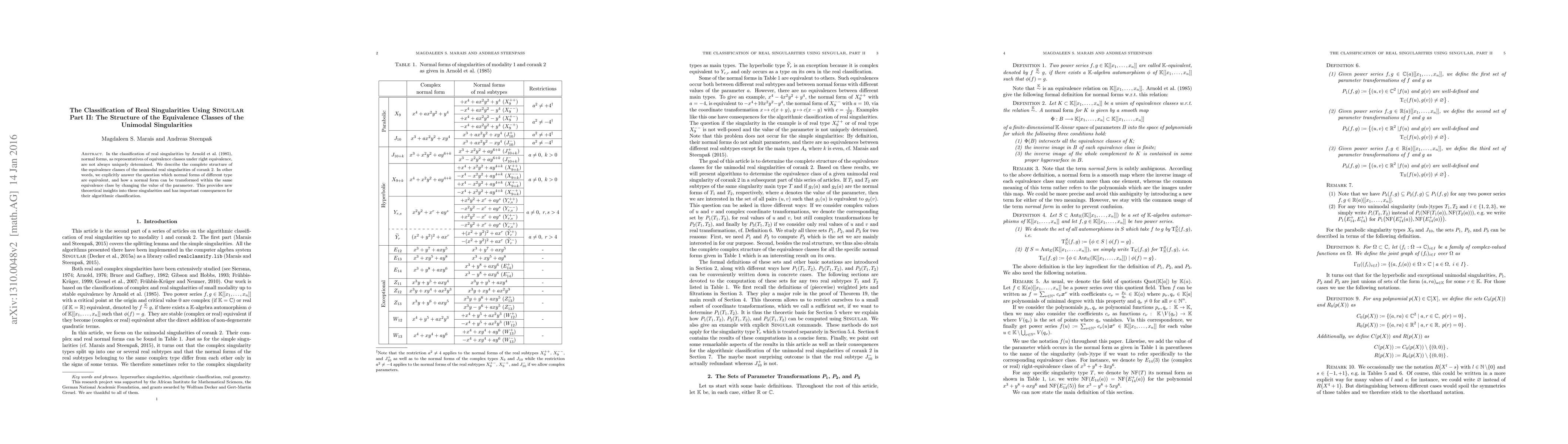 In the classification of real singularities by Arnold et al. (1985), normal forms, as representatives of equivalence classes under right equivalence, are not always uniquely determined. We describe the complete structure of the equivalence classes of the unimodal real singularities of corank 2. In other words, we explicitly answer the question which normal forms of different type are equivalent, and how a normal form can be transformed within the same equivalence class by changing the value of the parameter. This provides new theoretical insights into these singularities and has important consequences for their algorithmic classification.