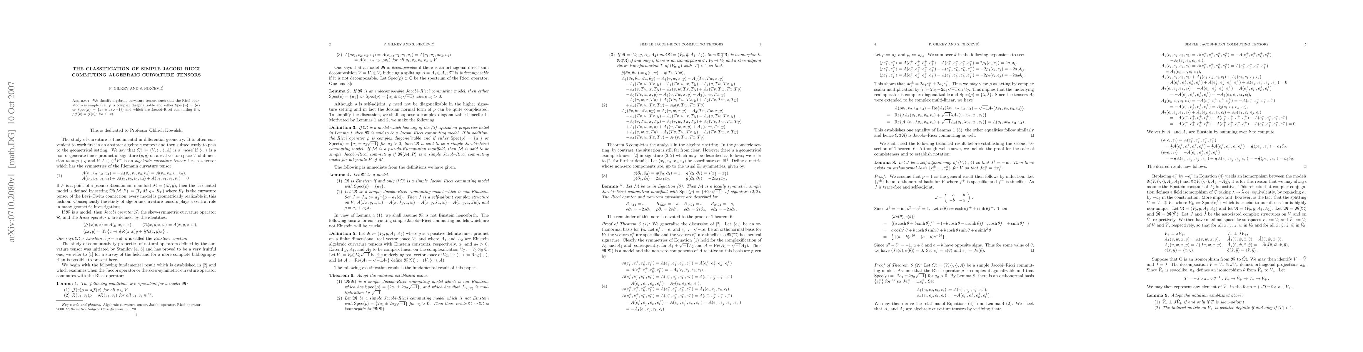 This paper classifies algebraic curvature tensors where the Ricci operator is simple and commutes with the Jacobi operator for any vector, providing a detailed examination of their structure and properties. The focus is on tensors with specific spectral characteristics and commutation properties.