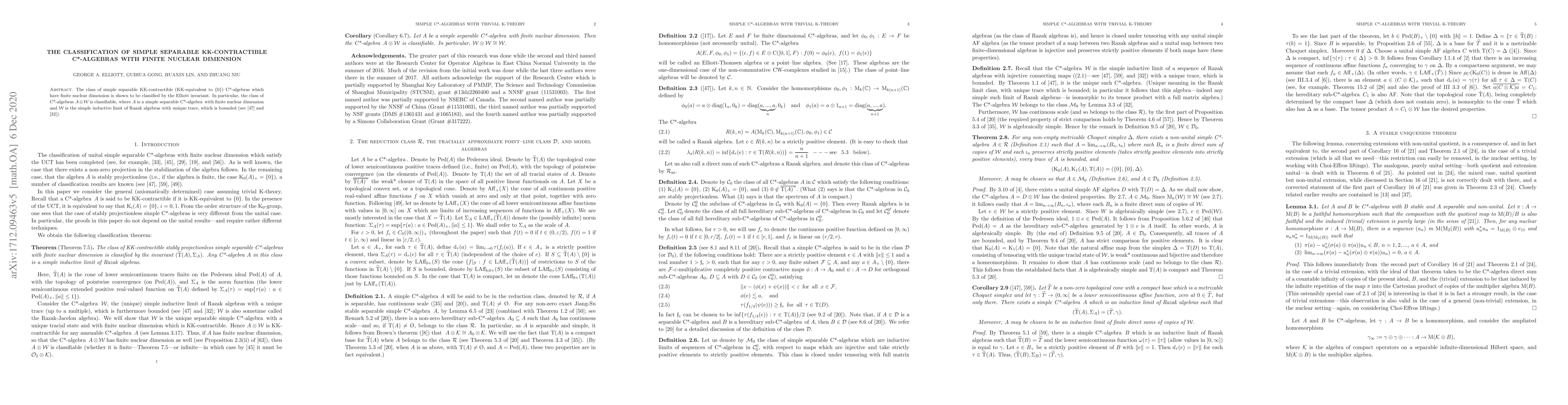 This paper demonstrates that simple separable KK-contractible C*-algebras with finite nuclear dimension are classified by the Elliott invariant. It also shows that the class of C*-algebras formed by tensoring with $\mathcal W$ is classifiable under these conditions.