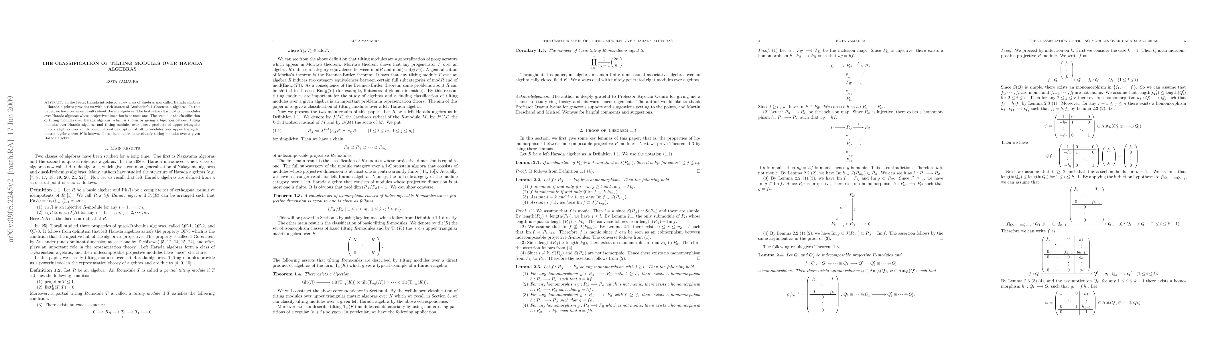 This paper classifies tilting modules over Harada algebras by establishing a bijection with tilting modules over direct products of upper triangular matrix algebras. The classification leverages known combinatorial descriptions of these matrix algebras.