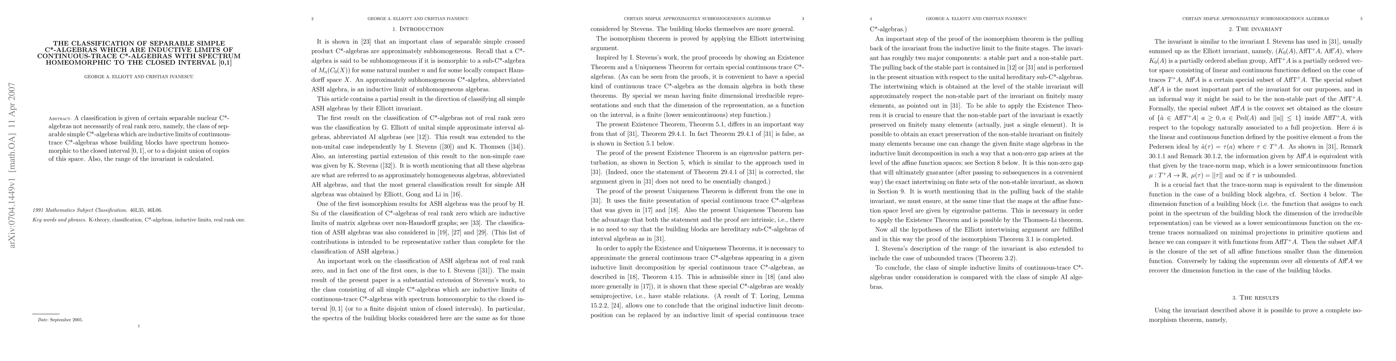 A classification is given of certain separable nuclear C*-algebras not necessarily of real rank zero, namely, the class of separable simple C*-algebras which are inductive limits of continuous-trace C*-algebras whose building blocks have spectrum homeomorphic to the closed interval [0,1], or to a disjoint union of copies of this space. Also, the range of the invariant is calculated.