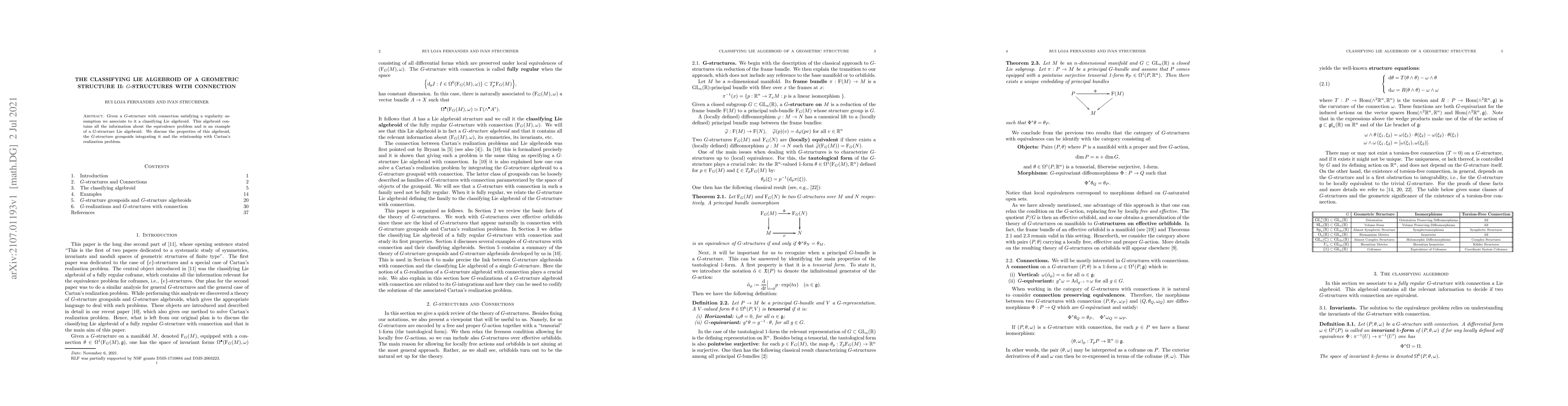 Researchers develop a classifying Lie algebroid for G-structures with connections, providing insight into equivalence problems and relationships to Cartan's realization problem.