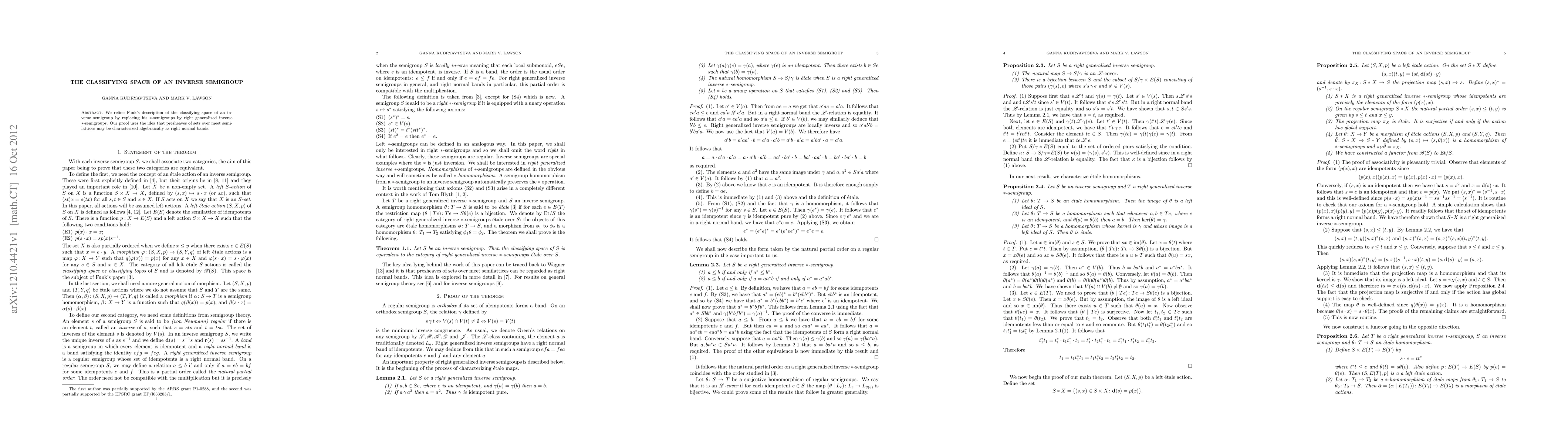 This paper refines Funk's description of the classifying space of an inverse semigroup using right generalized inverse *-semigroups, providing a new algebraic characterization of presheaves over meet semilattices.
