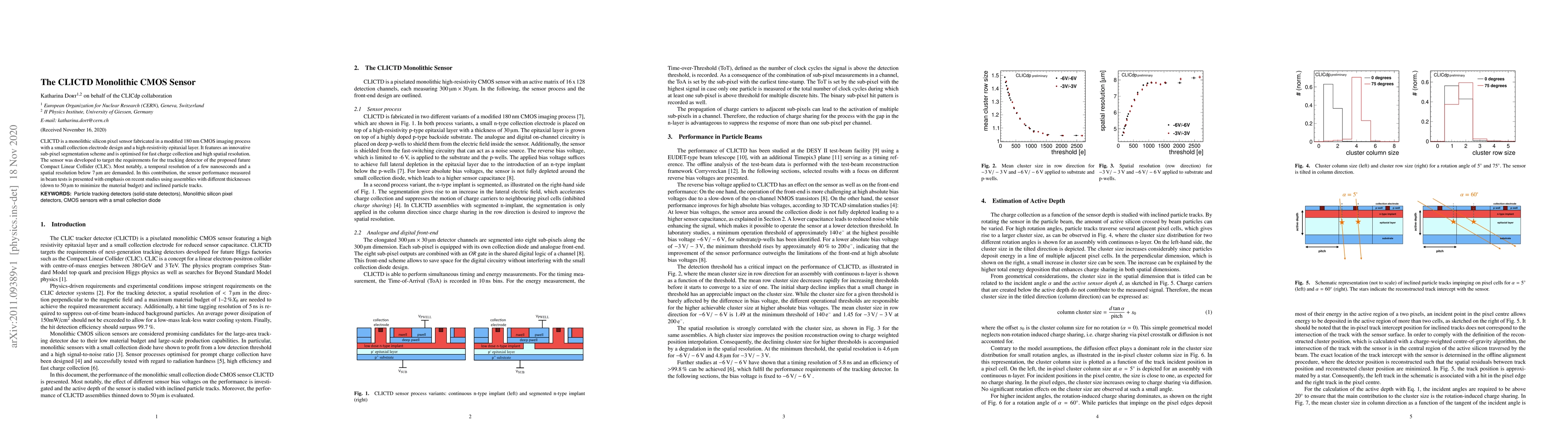 CLICTD is a monolithic silicon pixel sensor fabricated in a modified 180 nm CMOS imaging process with a small collection electrode design and a high-resistivity epitaxial layer. It features an innovative sub-pixel segmentation scheme and is optimised for fast charge collection and high spatial resolution. The sensor was developed to target the requirements for the tracking detector of the proposed future Compact Linear Collider (CLIC). Most notably, a temporal resolution of a few nanoseconds and a spatial resolution below 7 microns are demanded. In this contribution, the sensor performance measured in beam tests is presented with emphasis on recent studies using assemblies with different thicknesses (down to 50 microns to minimize the material budget) and inclined particle tracks.