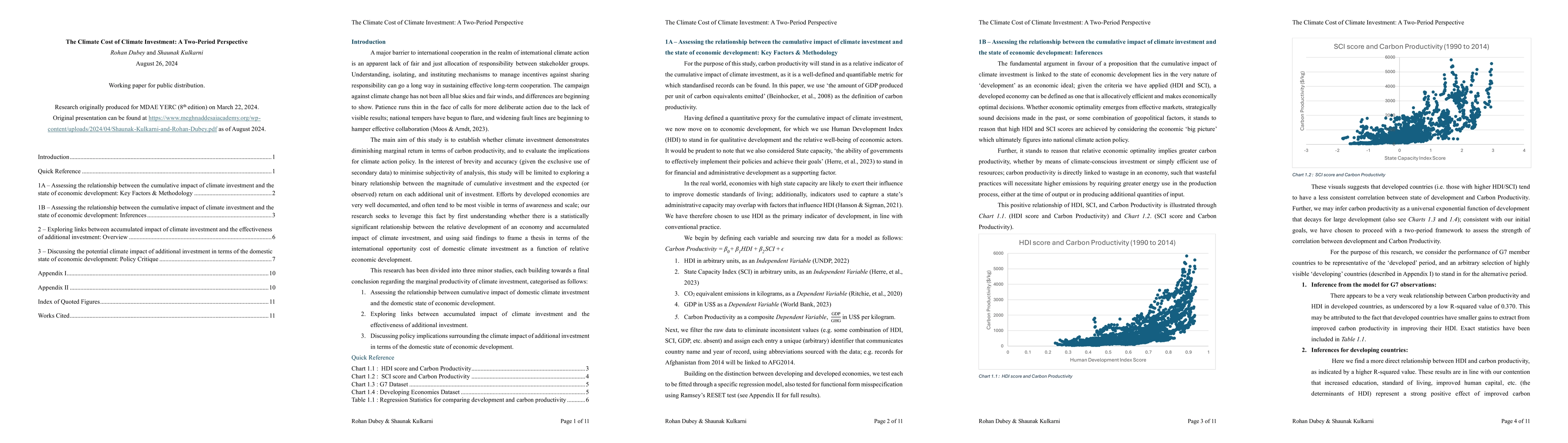 A one-size-fits-all paradigm that only adapts the scale and immediate outcome of climate investment to economic circumstances will provide a short-lived, economically inadequate response to climate issues; given the limited resources allocated to green finance, it stands to reason that the shortcomings of this will be exacerbated by the fact that it comes at the cost of long-term, self-perpetuating, systemic solutions. Financial commitments that do not consider the capital structure of green finance in an economy will cumulatively dis-aggregate the economic cost of climate investment, to erode the competitive advantage of the most innovative economies, while simultaneously imposing the greatest financial burden on economies that are most vulnerable to the impact of climate change; such disaggregation will also leave 'middle' economies in a state of flux - honouring similar financial commitments to vulnerable or highly developed peers, but unable to generate comparable return, yet sufficiently insulated from the impact of extreme climate phenomena to not organically develop solutions. In the face of these changing realities, green innovation needs to expand beyond technology and address systemic inefficiencies - lack of clear responsibility, ambiguously defined commitments, and inadequate checks & balances to name a few. Clever application of financial engineering demonstrates promise, and simple measures like carbon-credit exchanges have been effective in mitigating imperfections at the grassroots level. We believe that information- and incentive-centric systemic advancements can usher a fresh wave of green innovation that stands on the shoulders of giants to ensure effective implementation of technological breakthroughs; economic development that will create an international community equipped with a robust framework to deal with long-term crises in a strategic manner.