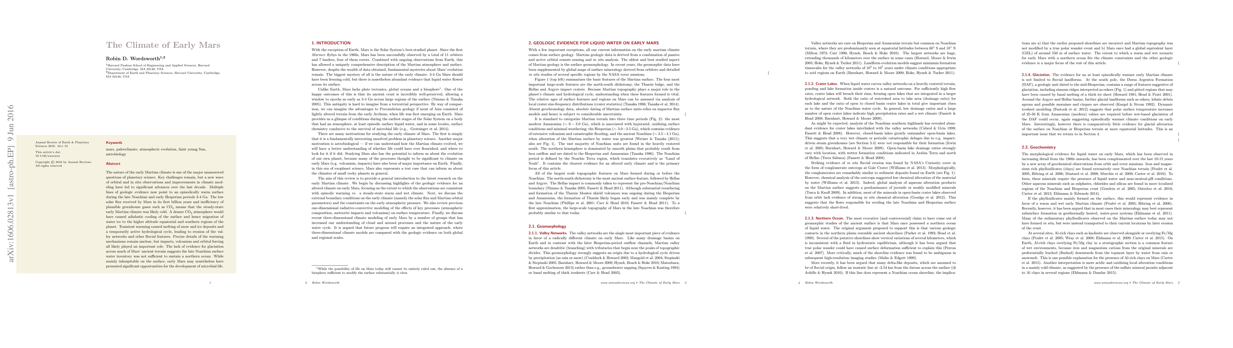 This paper discusses the episodically warm climate of early Mars during the late Noachian and early Hesperian periods, driven by transient warming mechanisms such as impacts and volcanism, despite a generally cold, CO2-dominated atmosphere. The transient warming led to a temporary hydrological cycle, despite the absence of sufficient water to form a northern ocean.