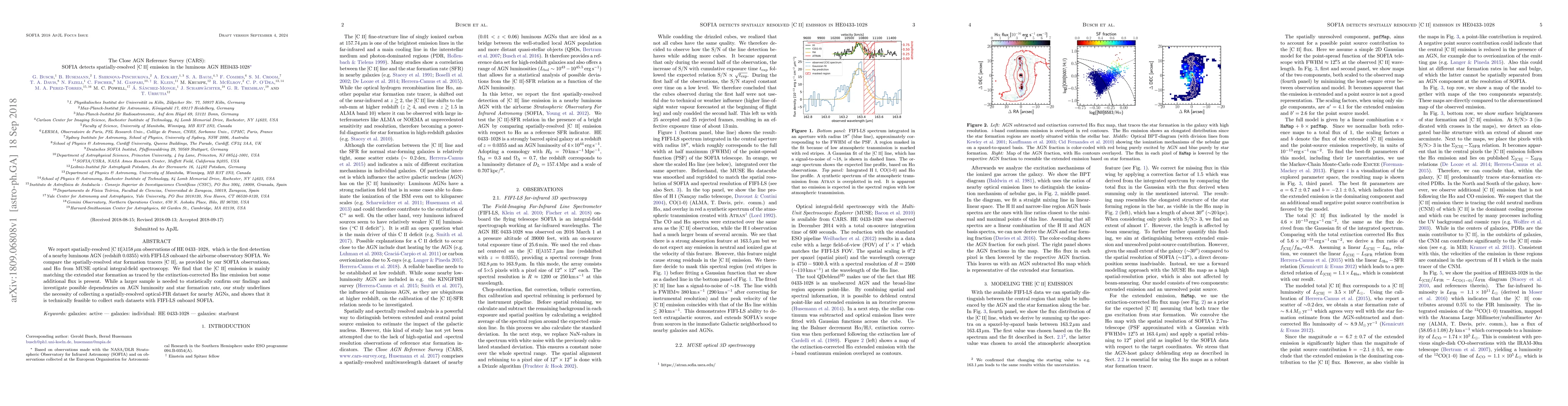 We report spatially-resolved [CII]$\lambda 158$ $\mu$m observations of HE 0433-1028, which is the first detection of a nearby luminous AGN (redshift 0.0355) with FIFI-LS onboard the airborne observatory SOFIA. We compare the spatially-resolved star formation tracers [CII], as provided by our SOFIA observations, and H$\alpha$ from MUSE optical integral-field spectroscopy. We find that the [CII] emission is mainly matching the extended star formation as traced by the extinction-corrected H$\alpha$ line emission but some additional flux is present. While a larger sample is needed to statistically confirm our findings and investigate possible dependencies on AGN luminosity and star formation rate, our study underlines the necessity of collecting a spatially-resolved optical-FIR dataset for nearby AGNs, and shows that it is technically feasible to collect such datasets with FIFI-LS onboard SOFIA.