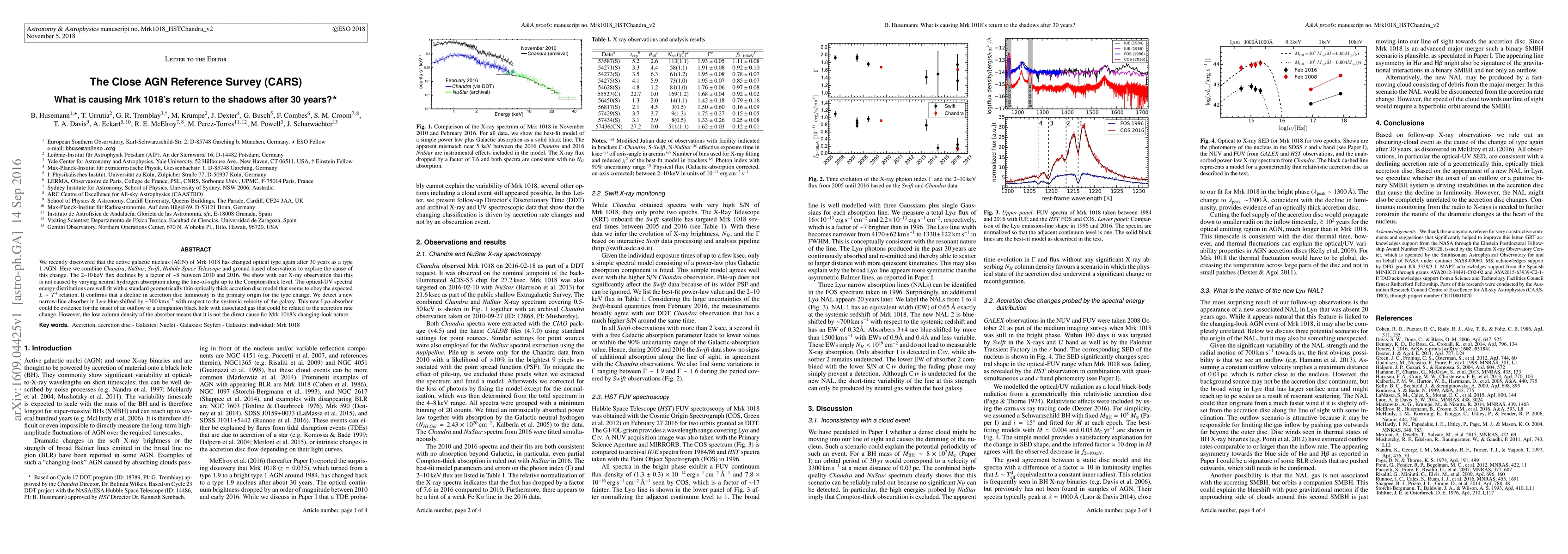 Researchers used multi-wavelength observations to study the change in Mrk 1018's active galactic nucleus from a type 2 AGN to a type 1 AGN after 30 years, finding that a decline in accretion disc luminosity is the primary cause of this change.